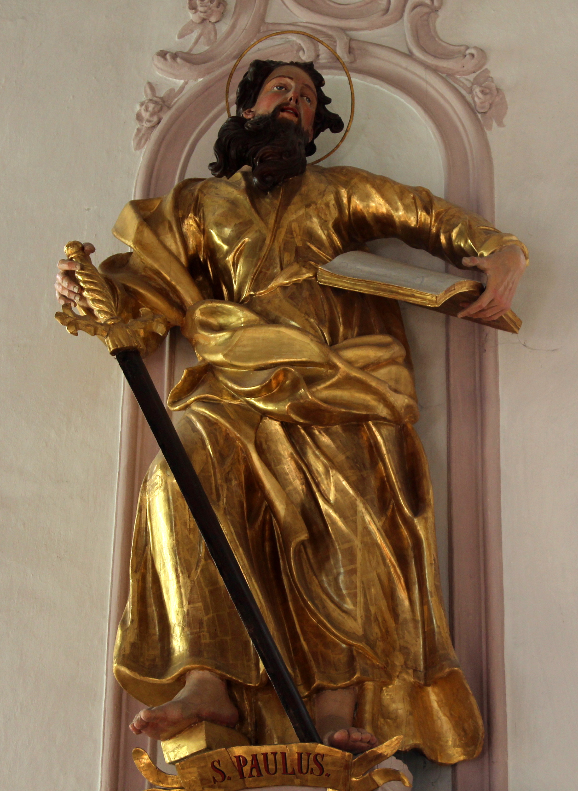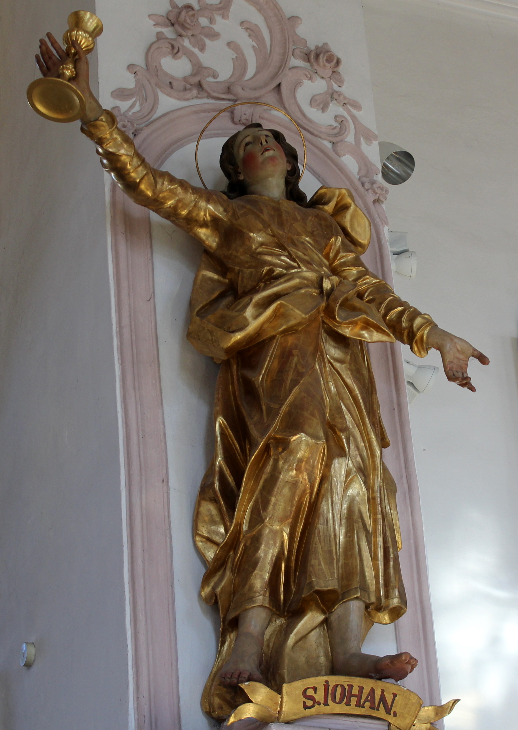 Tritt man in den Kirchenraum von Sankt Blasius, so ist man umgeben von vierzehn überlebensgroßen Rokokodarstellungen. Es sind Jesus, Maria und die zwölf Apostel. Sie tragen reich bewegte und gefaltete goldglänzende Gewänder und stehen in kleinen Nischen des Hauptraumes und des Chors. Sie umgeben die Gläubigen und sagen gleichsam, seht her und hört.