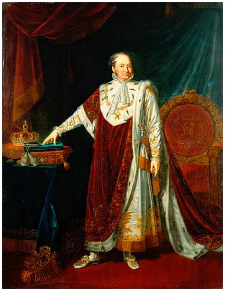 Für seine Bündnistreue zu Napoleon wurde Bayern zum Königreich aufgewertet. 1806 ließ sich der bisherige Kurfürst Maximilian IV. Joseph zum König krönen. Er nannte sich nun Maximilian I. Joseph, König von Bayern Die Gemeinden erhielten Malvorlagen in der Erwartung, dass wohlhabende Bürger Künstler beauftragen Gemälde des Regierenden herzustellen. Der Brauch, den Regierenden in allen Landesteilen darzustellen war seit jeher üblich. Bekannt sind die vielen Kaiser Augustus Standbilder in allen Provinzen des Weltreiches, die nach einem Orginal in Rom gefertigt wurden.