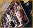 Die Statuen erhielten in der Werkstatt von Kirchenmaler Joseph Schugg die alte Farbigkeit zurück. Nach der Renovierung wurden auf Ladewagen die Figuren in die Kirche zurückgebracht. Joseph Schugg und Werner Abt vor der Werkstatt.