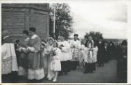 6. Der Zug führt vorbei am Endres Haus. Für Altusried war abgeordnet Gg.Burger, dahinter Pfarrer Günthör mit einem Birett als Zeichen eines Amtes.