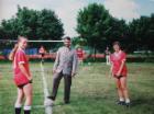 Bürgermeister Kammel beim Anstoß zum Fußballtraining