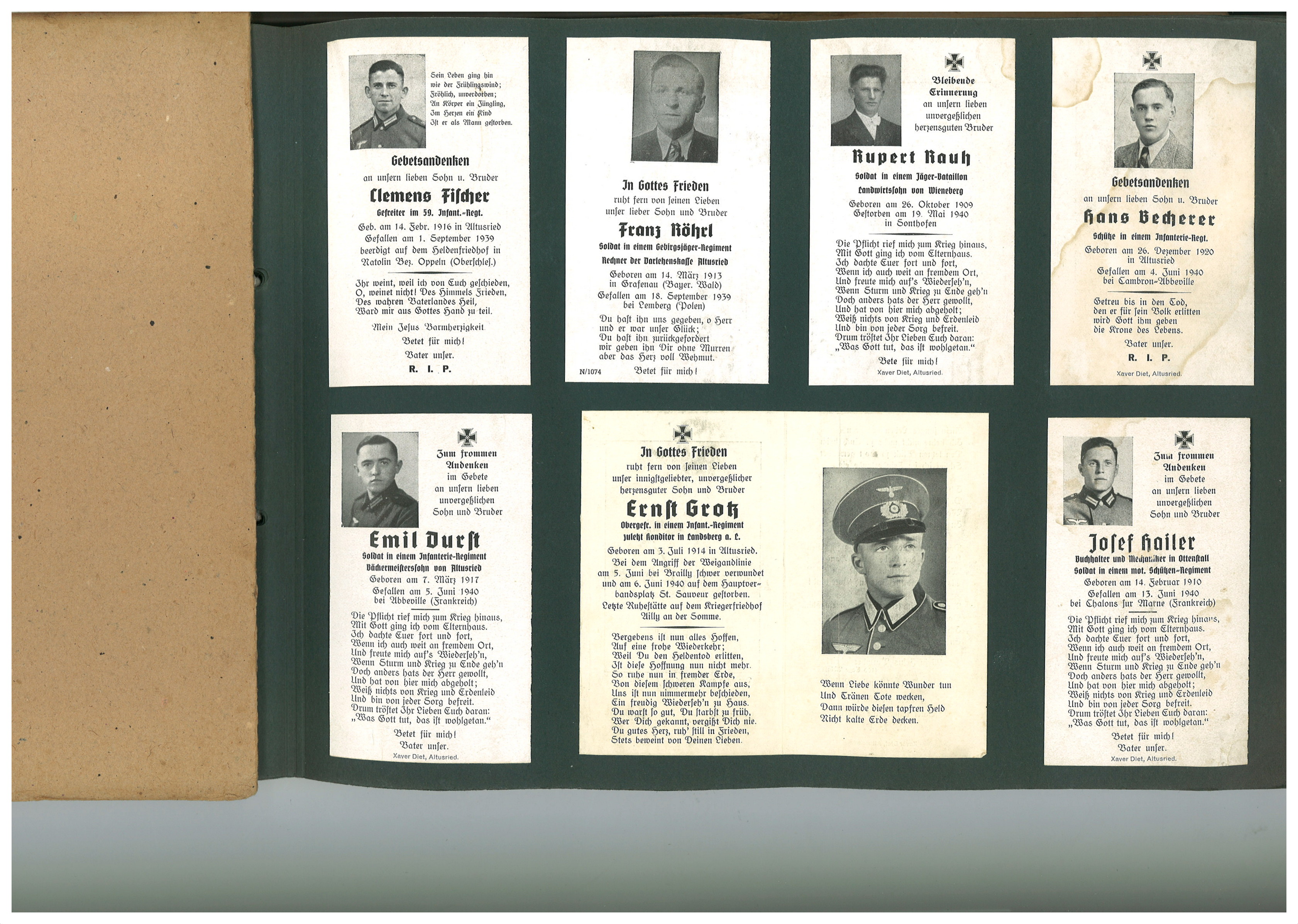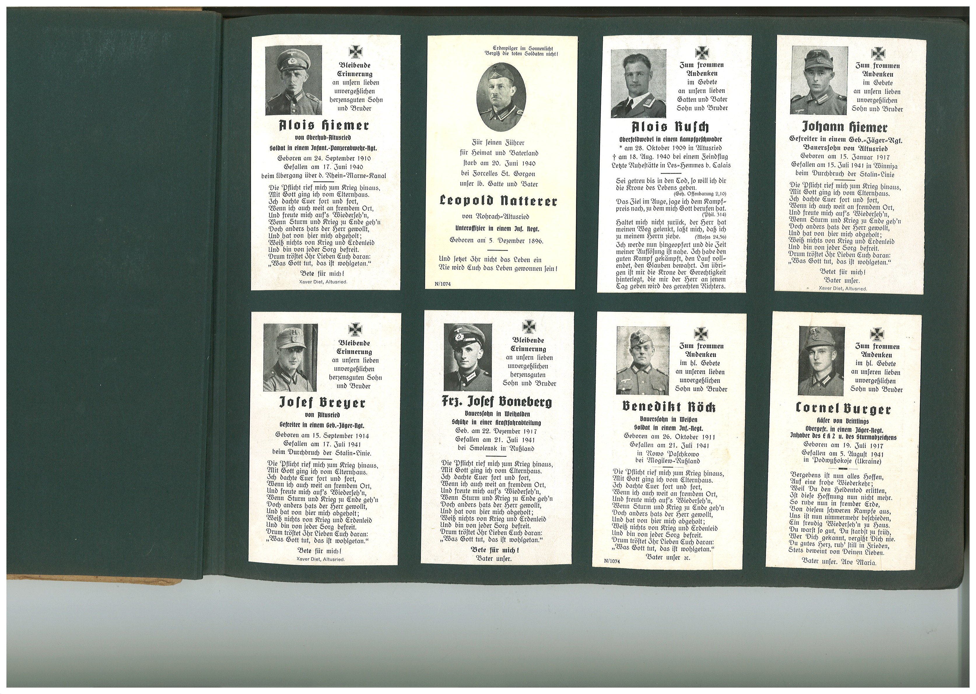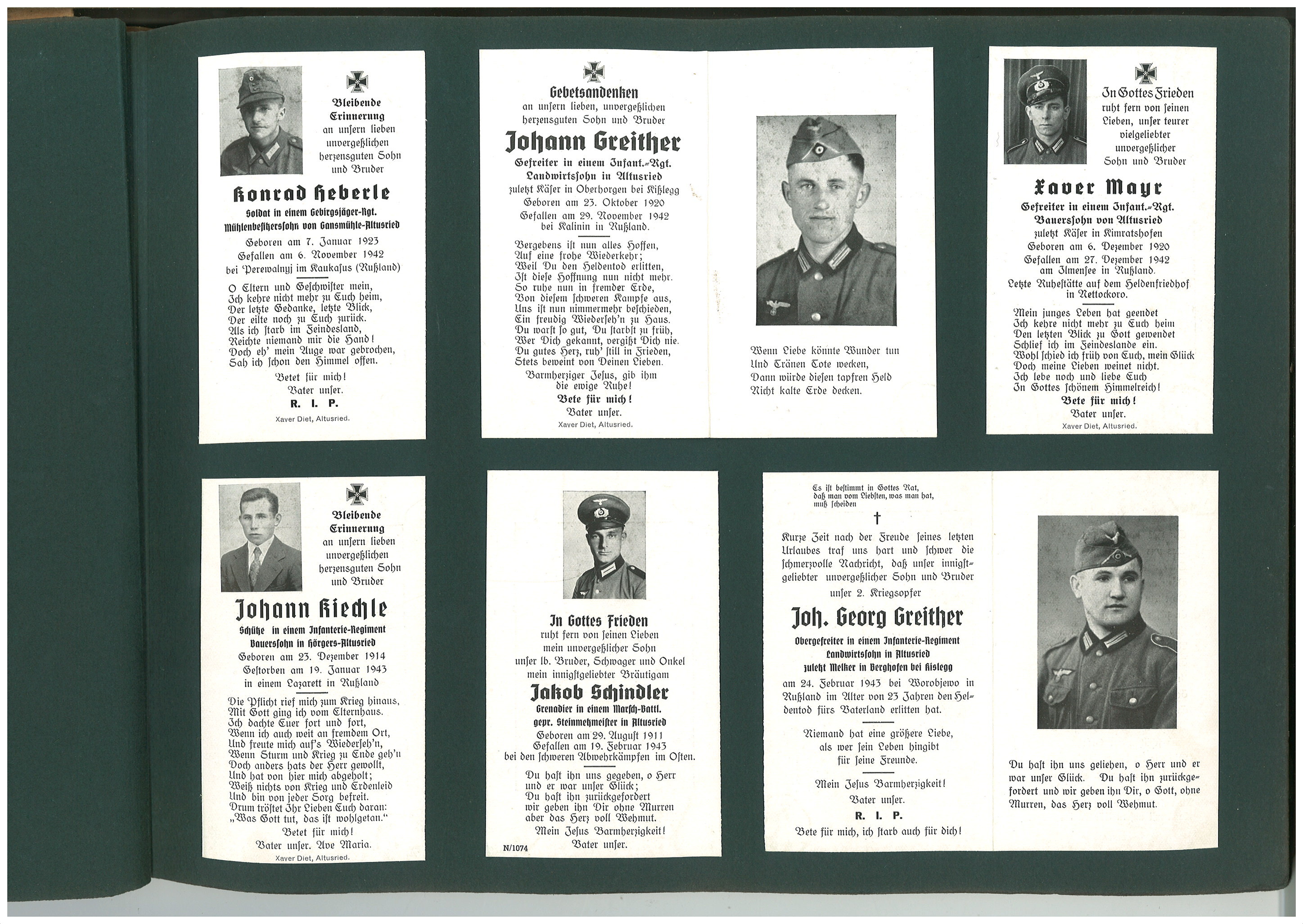 Siebzig Jahre nach dem Großen Krieg geben die Sterbebilder Nachricht über die vielen Tragödien, den frühen Tod der Soldaten und die Trauer der Hinterbliebenen. Reime und Gebete versuchen zu erklären und zu trösten. Die Orte des Todes spiegeln den Verlauf und die Brennpunkte des Krieges wieder.