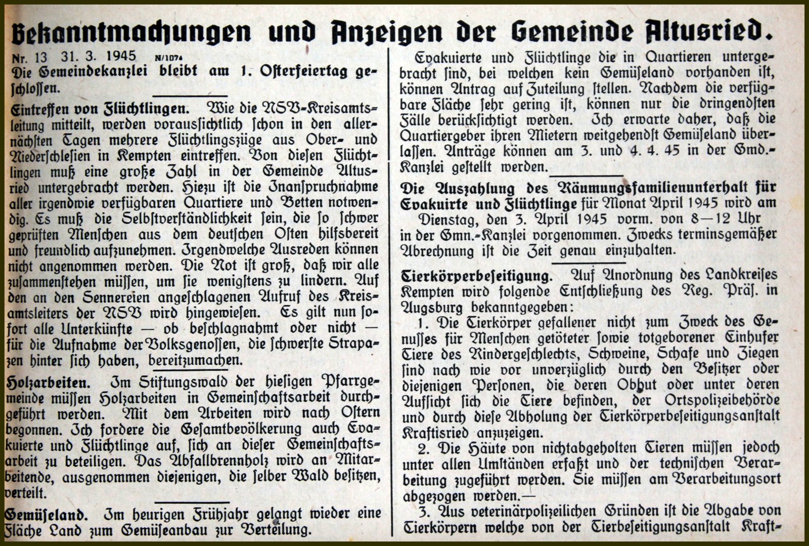 - Flüchtlinge aus Ober- und Unterschlesien treffen in Altusried ein.