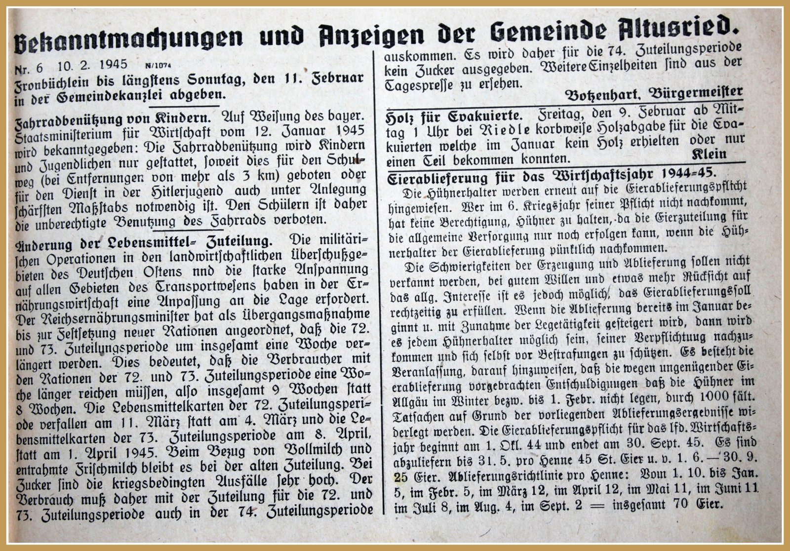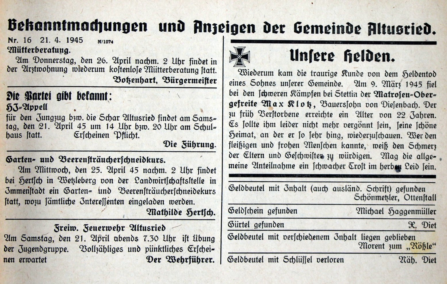 Eine glückliche Nachricht, zwei Soldaten, Hans Röck und Otto Kracker, wurden fälschlicherweise für tot erklärt und kehrten doch im September 1945 zurück.