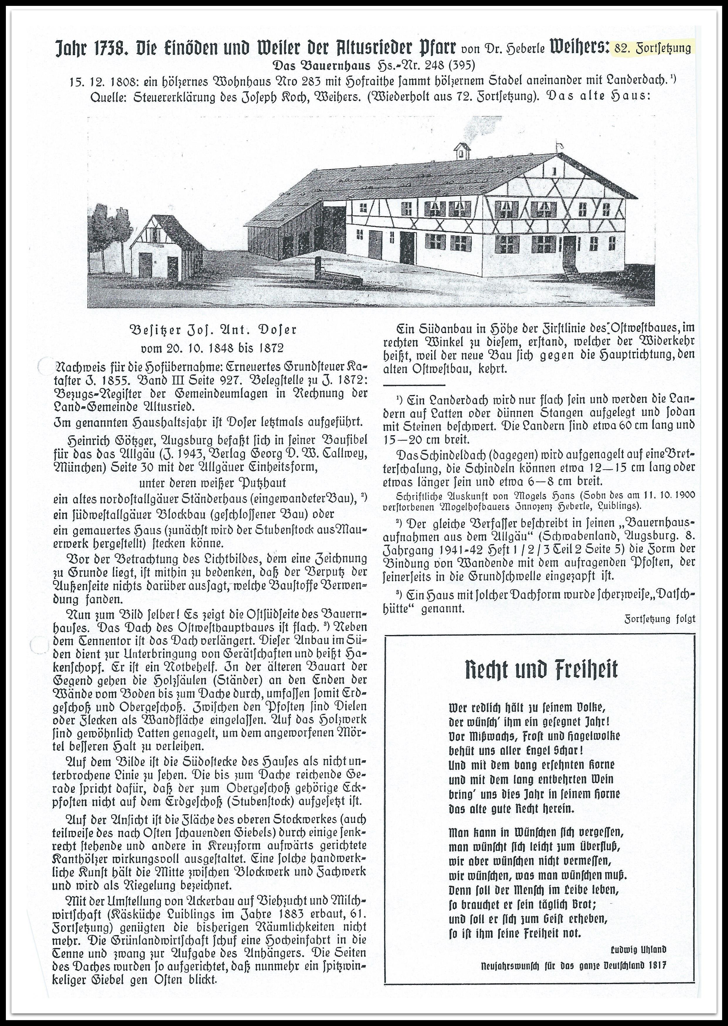 1848 Allgäuer Bauernhaus, Besitzer Josef Anton Doser