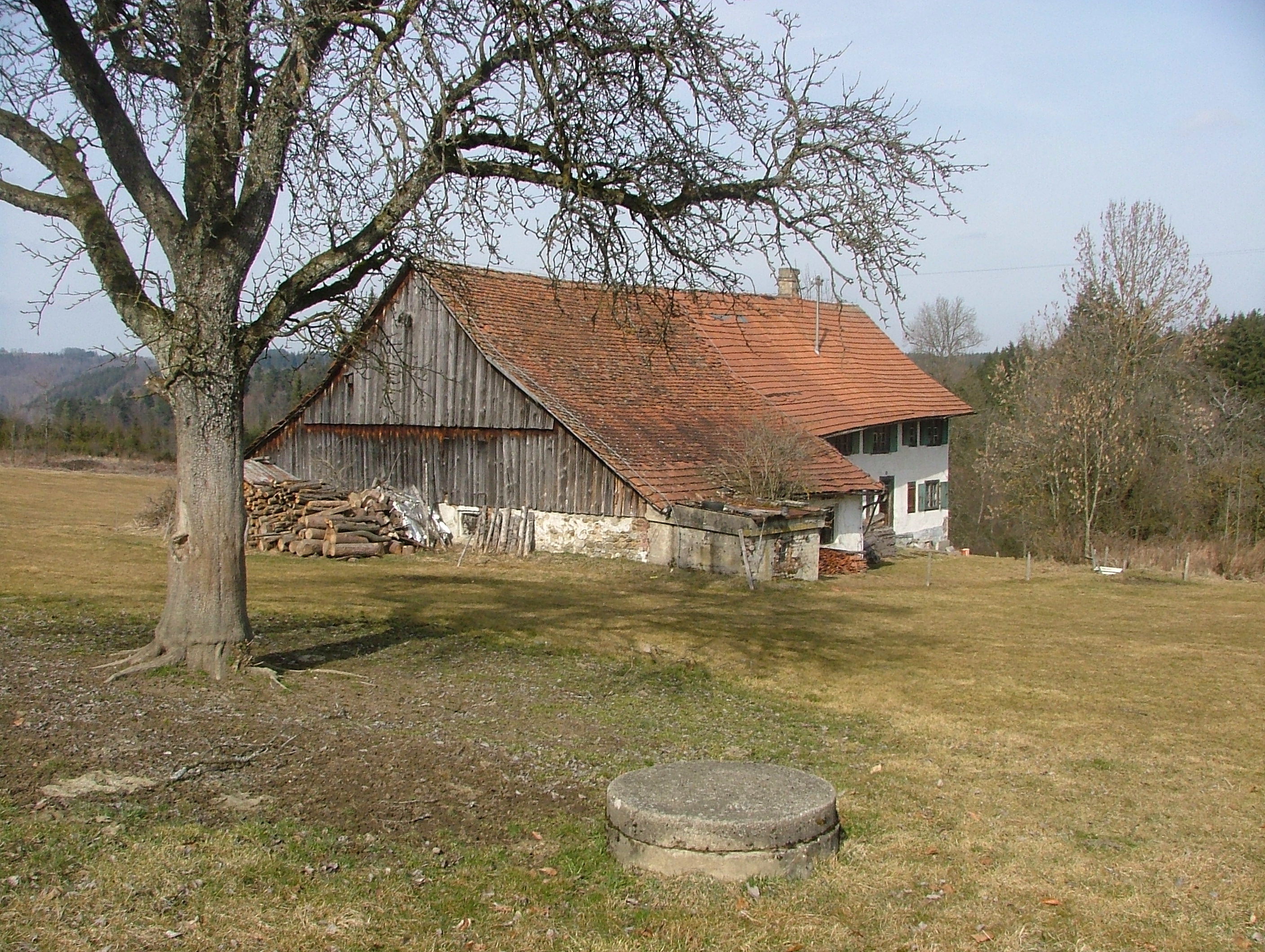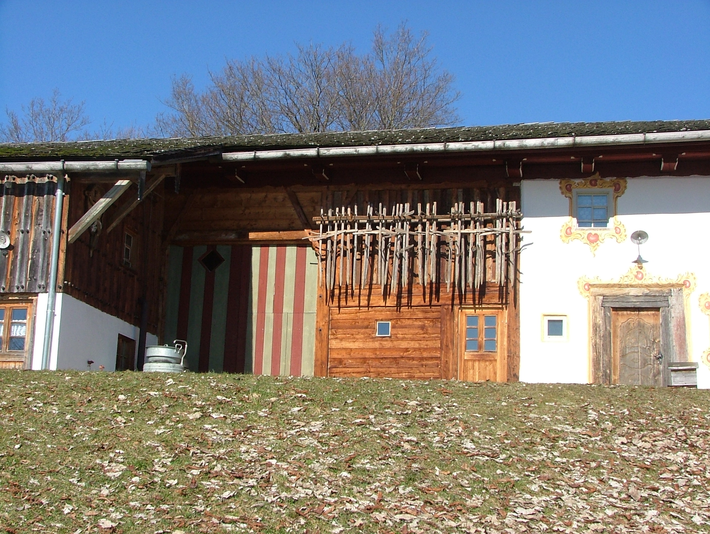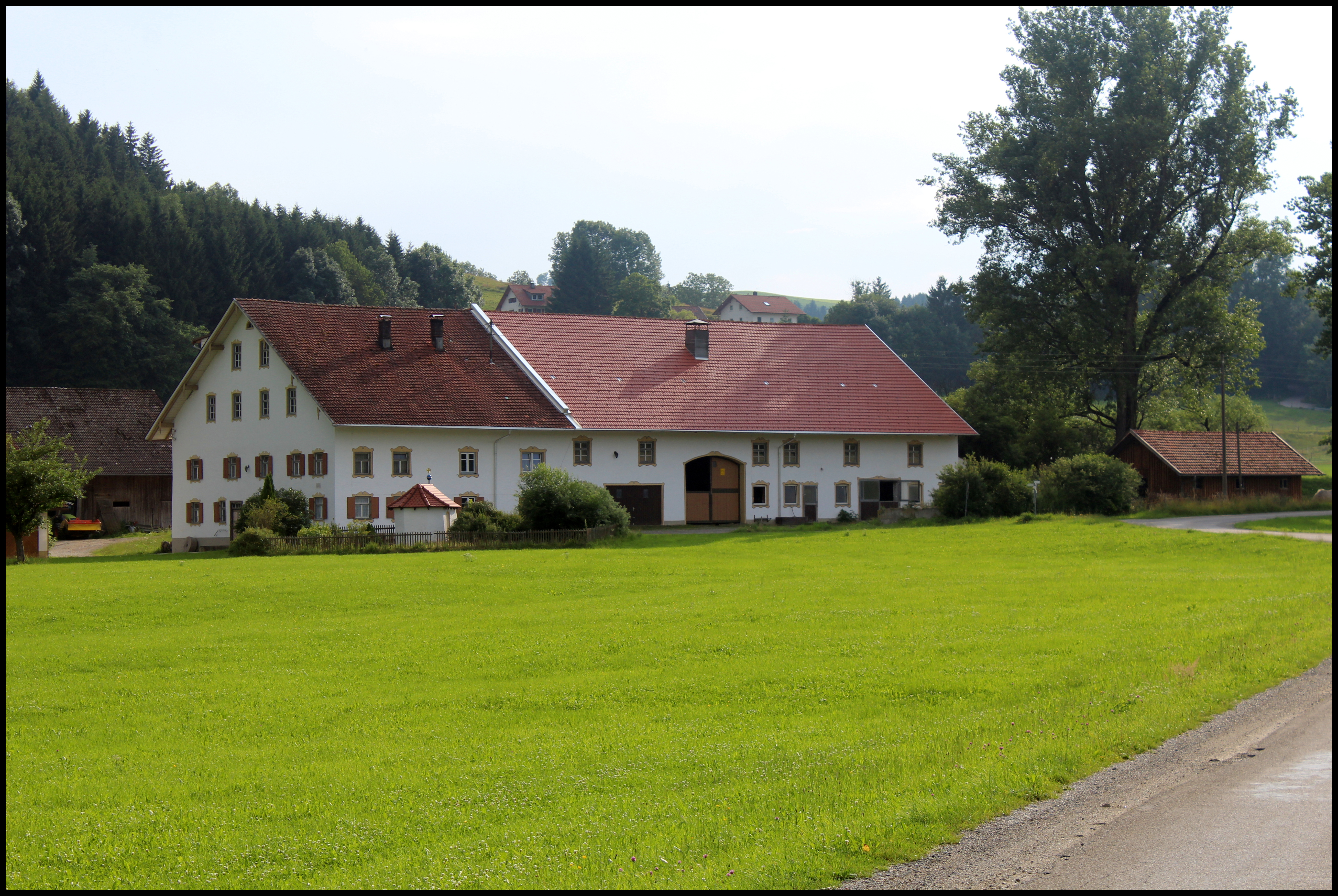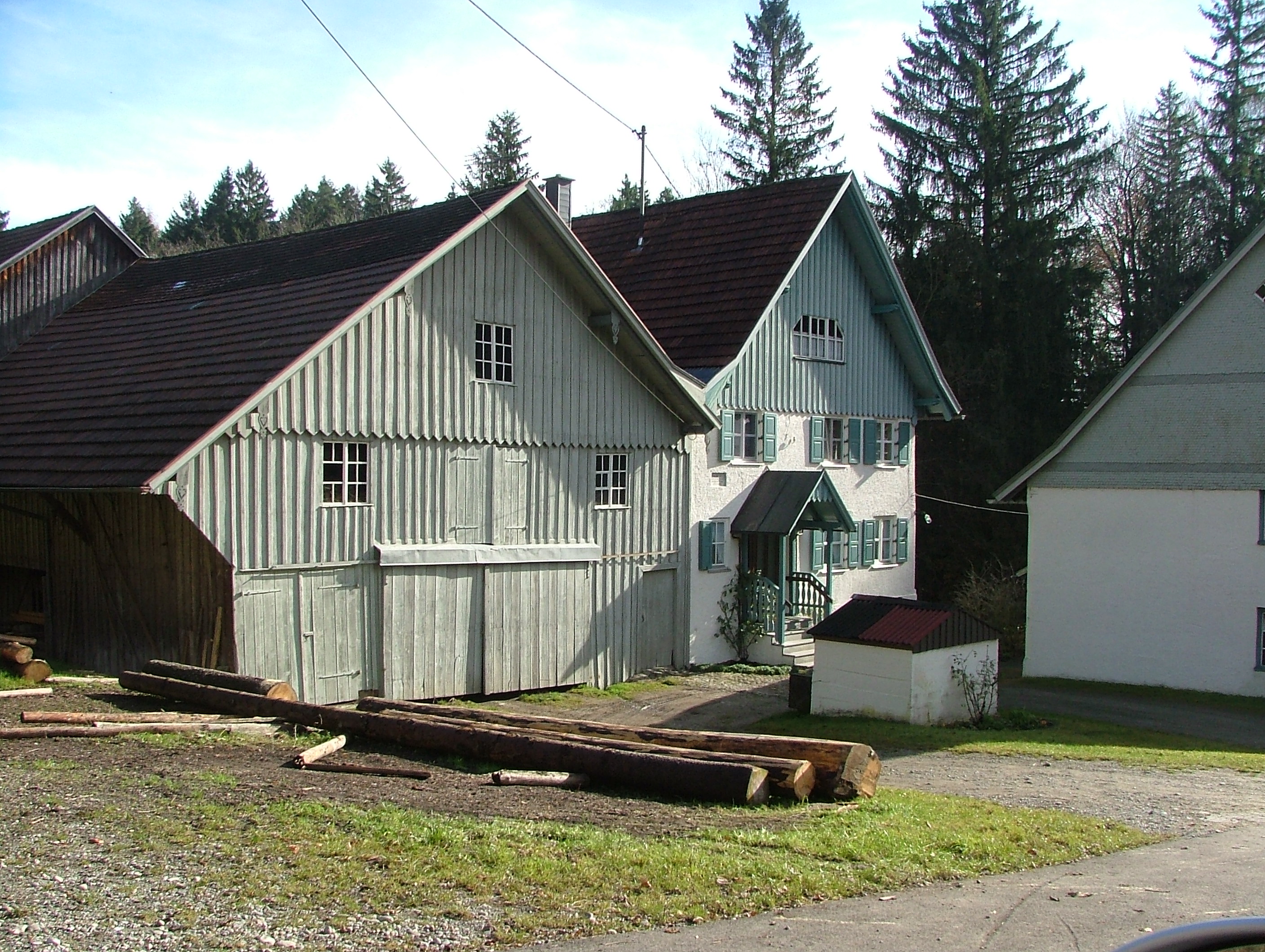Der Hof besitzt noch einen Hakenschopf . Später wurden diese zumeist durch einen Wiederkehr ersetzt, denn um die Jahrhundertwende gelang es die Erträge zu steigern, so dass man für das Heu mehr Bergeraum brauchte. Der Hof zeigt auch noch das flache Allgäuer Dach und das schöne Fachwerk. Leider ist unbekannt, wo genau der Hof liegt.