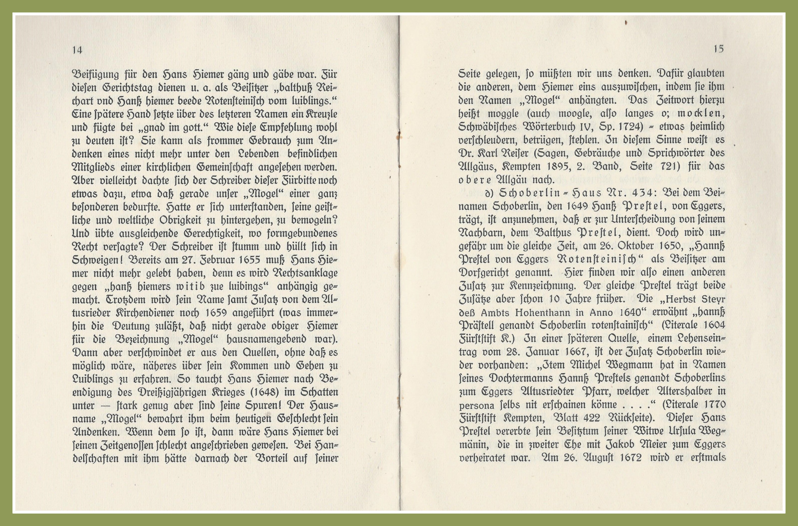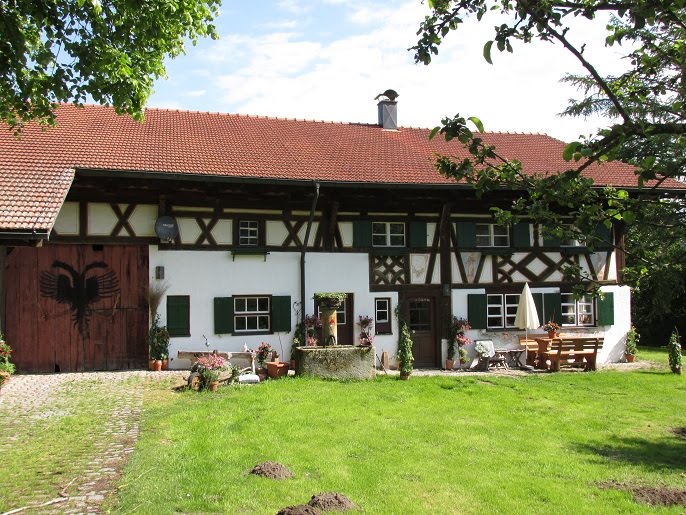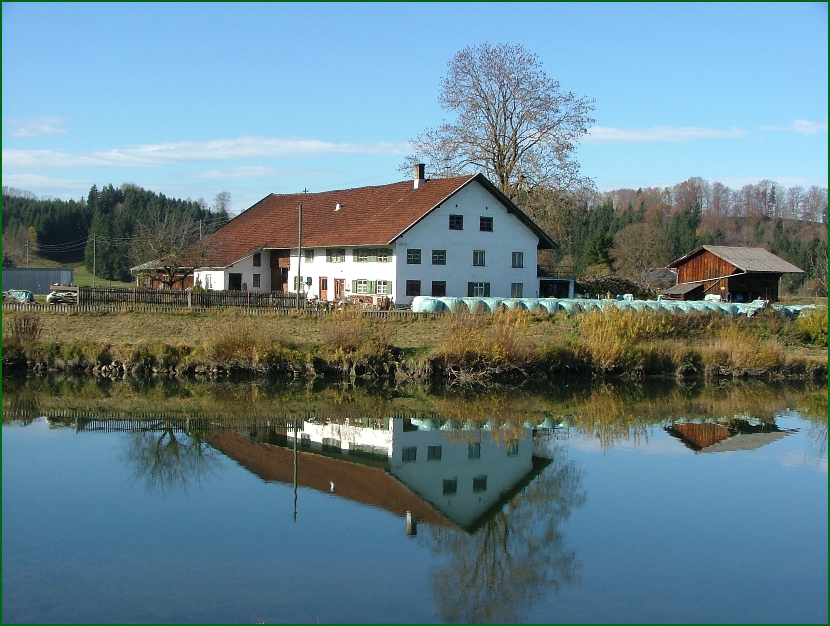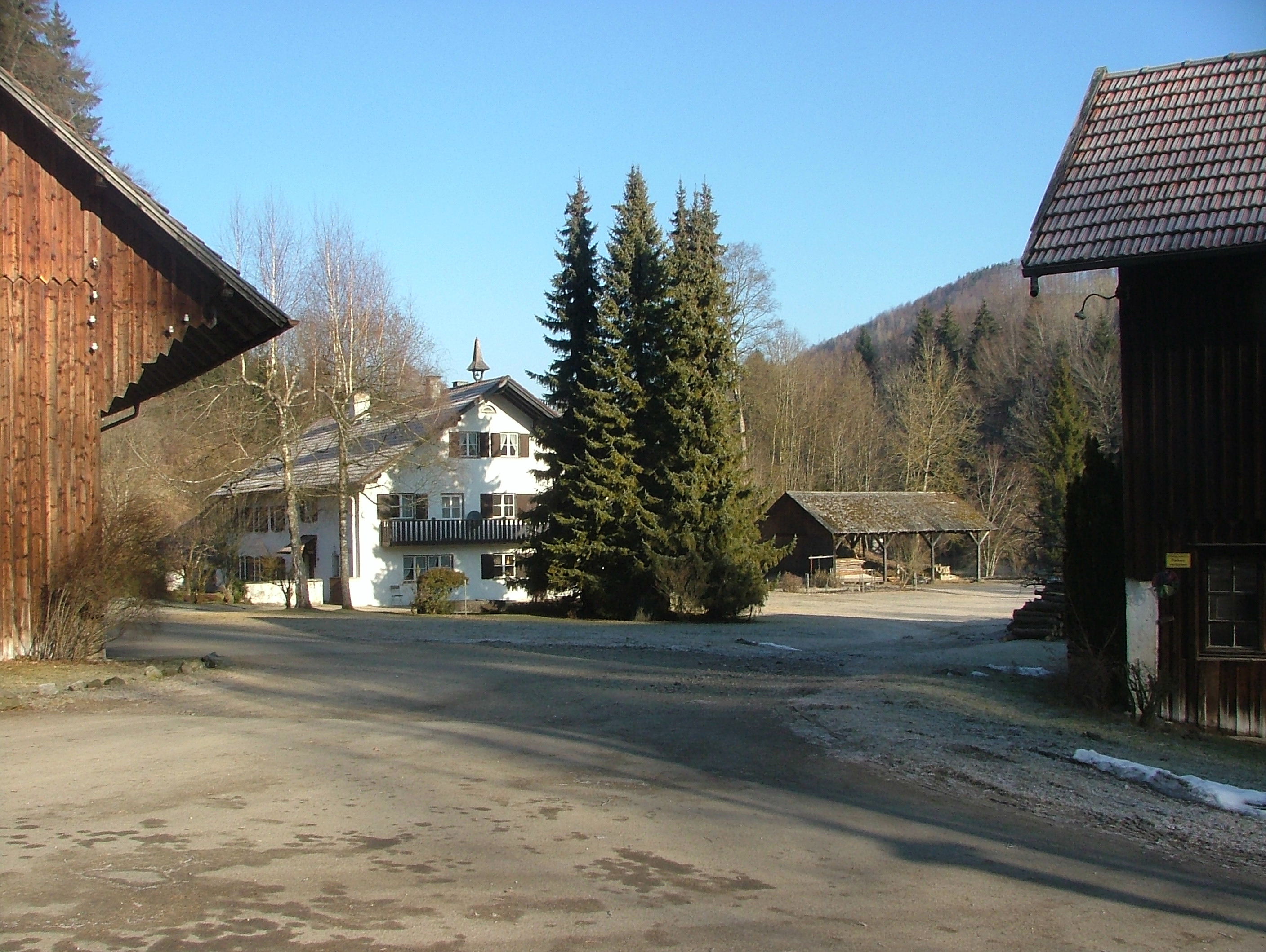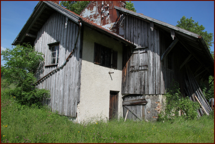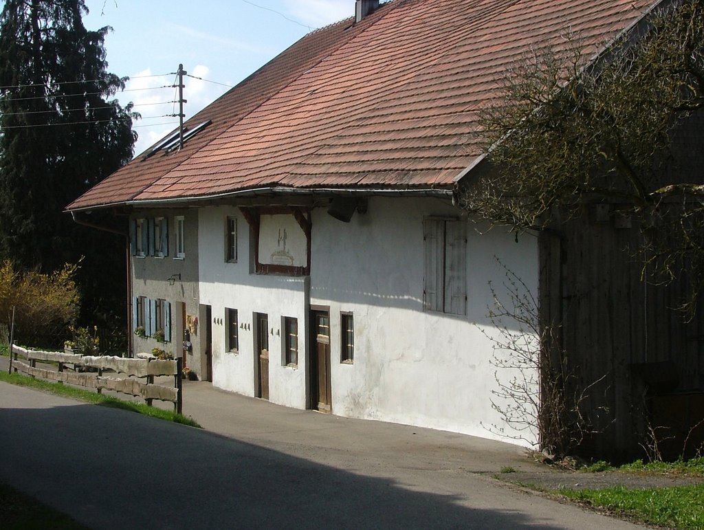 Der Hof besitzt noch einen Hakenschopf . Später wurden diese zumeist durch einen Wiederkehr ersetzt, denn um die Jahrhundertwende gelang es die Erträge zu steigern, so dass man für das Heu mehr Bergeraum brauchte. Der Hof zeigt auch noch das flache Allgäuer Dach und das schöne Fachwerk. Leider ist unbekannt, wo genau der Hof liegt.