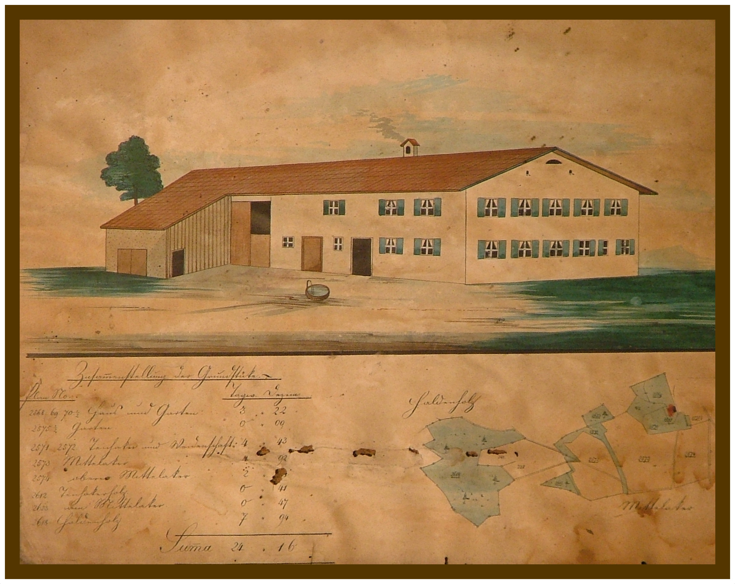 1881 Bild, Plan und Auflistung des Grundbesitzes des Xaver Leiprecht von Hinteregg , später Peter und Marmon