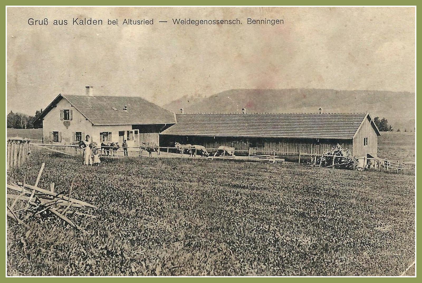 Weidegenossenschaften waren Vereinigungen von Landwirten zur gemeinsamen Nutzung von Weideflächen. Es waren offensichtlich auch Westerheimer Bauern, die in den Zwanzigerjahren die Flächen bei Kalden für den Sommeraufenthalt ihres Jungviehs nutzten. Das Ehepaar Hans und Maria Huber war viele Jahre Hirte beim Hofgut Kalden.