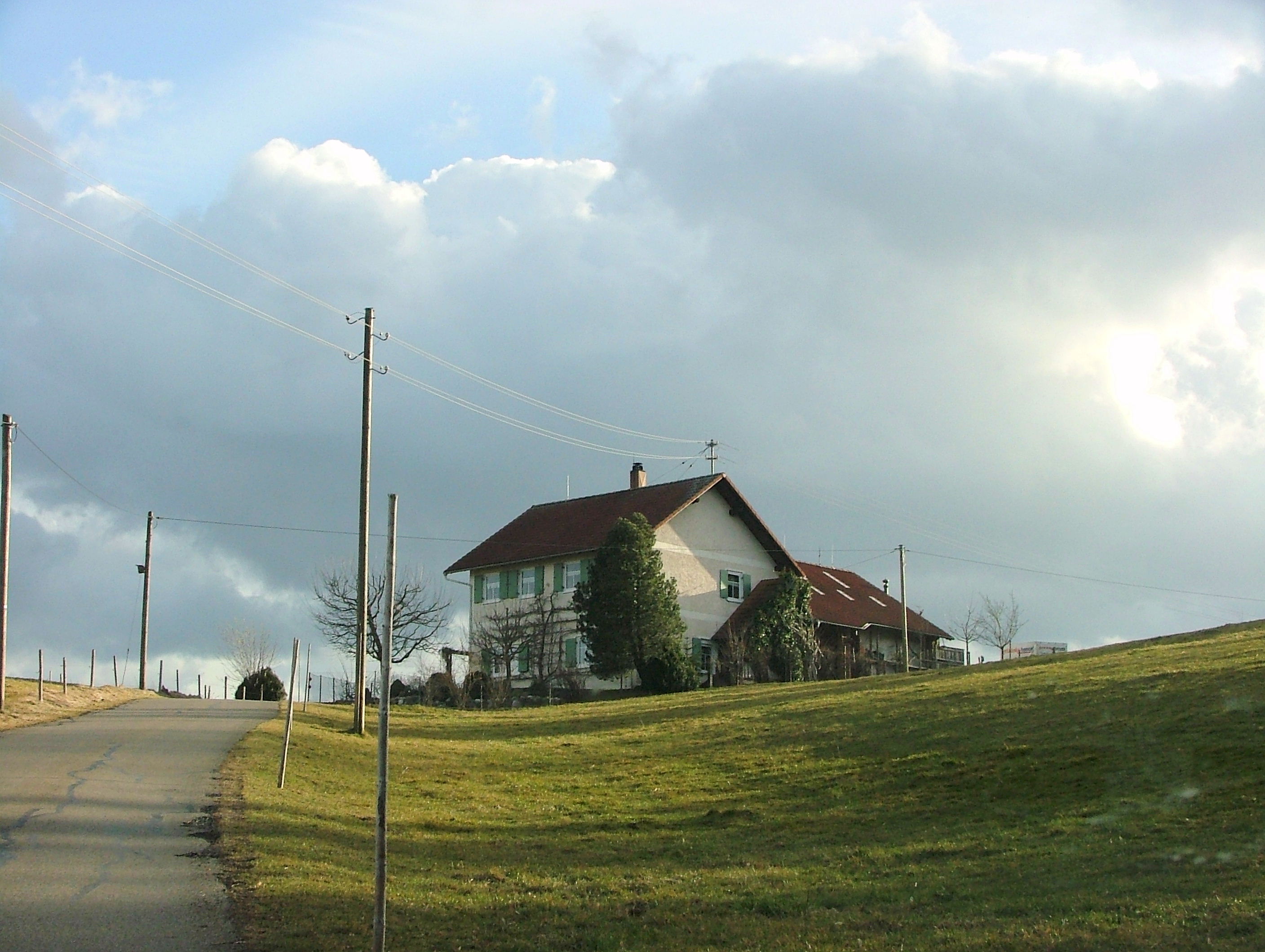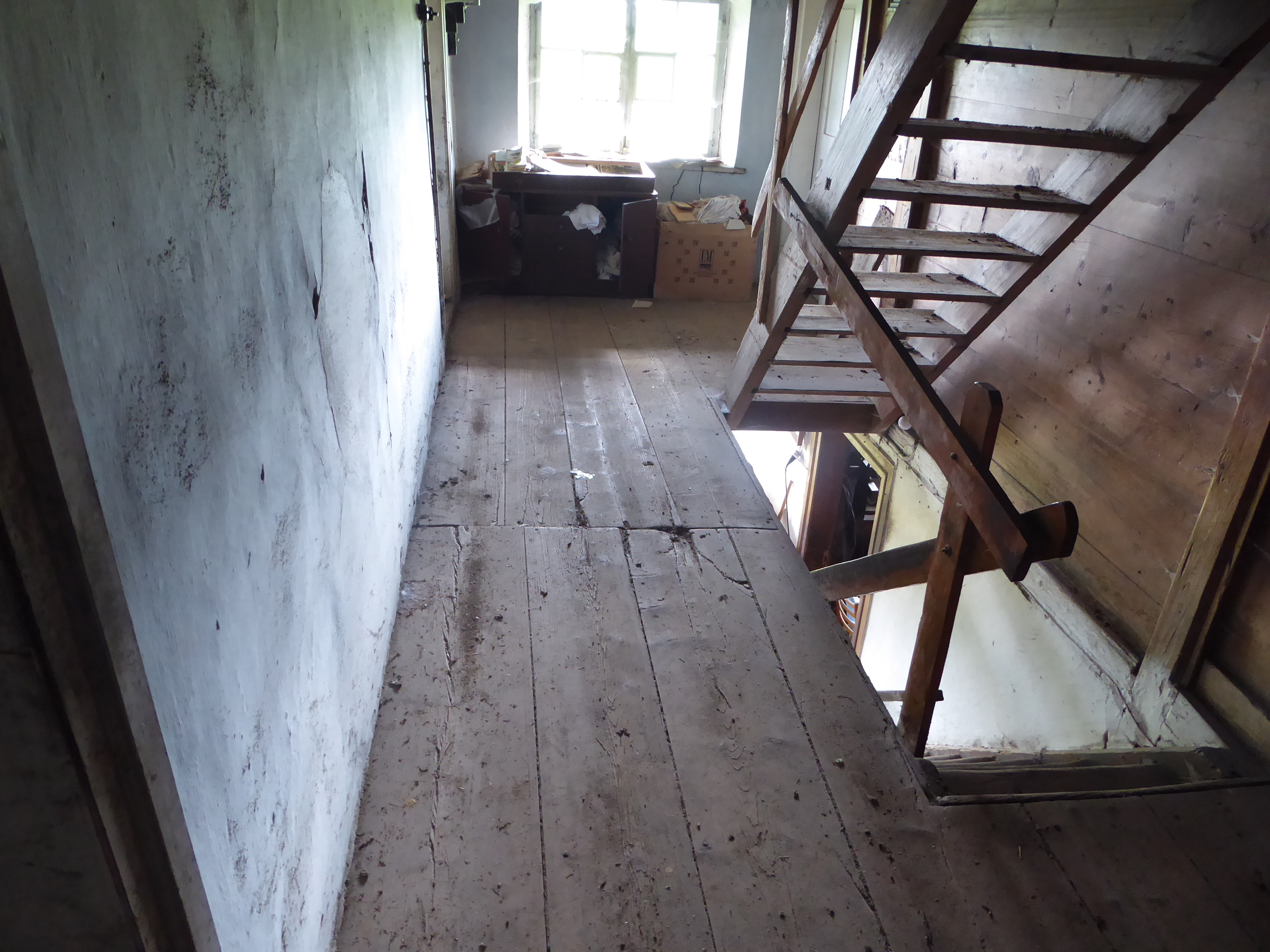In späterer Zeit brauchte man mehr Platz für Mensch Tier und Heu, deshalb wurde das Gebäude verbreitert. Außerdem erleichterte eine Auffahrt den Transport der Futtermittel in den Heuschopf. Foto von R. Guggenmos