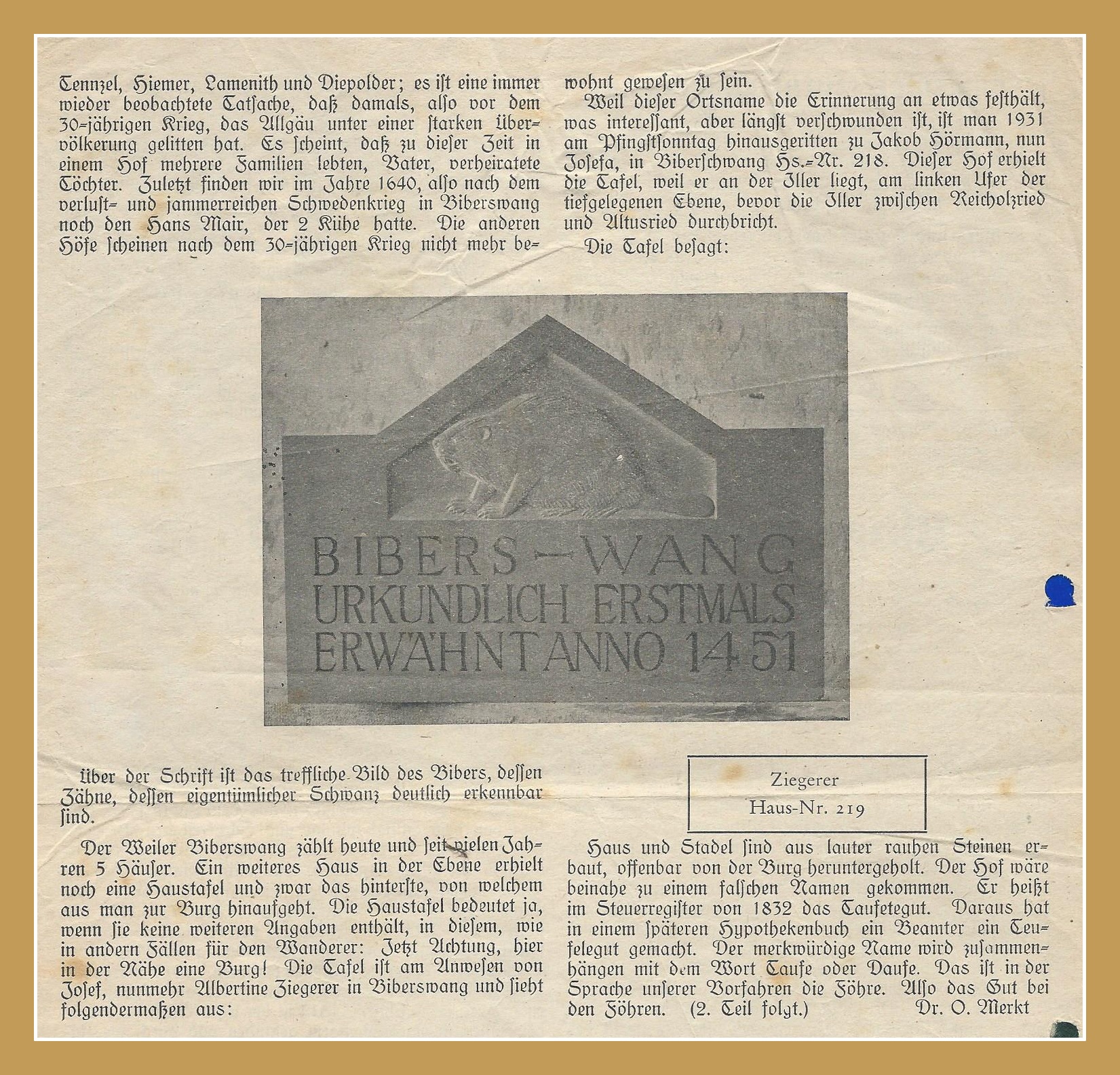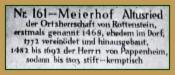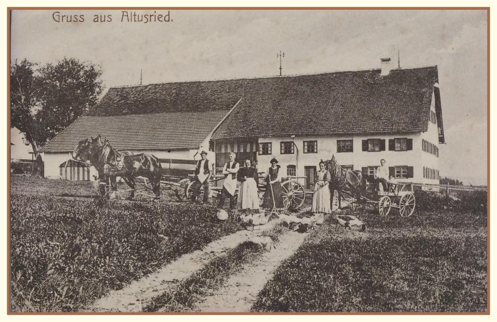 - Inschrift auf der Merkt`schen Tafel :Nr. 161 Meierhof Altusried der Ortsherrschaft von Rottenstein, erstmals genannt 1468, ehedem im Dorf, 1772 vereinödet und hinausgebaut, 1482 bis 1692 der Herrn von Pappenheim, sodann bis 1803 stift-kemptisch