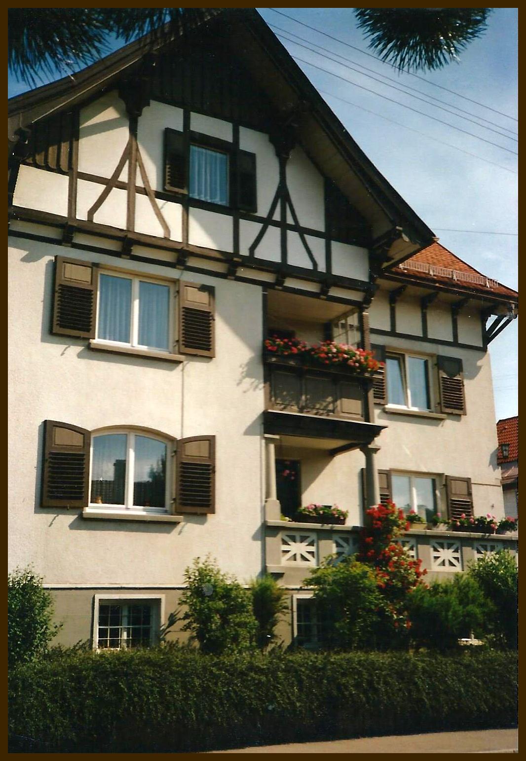 Das Grotz Haus, ein Nachbarhaus und das Krün Haus wurden geplant und erbaut von dem Baumeister Thanner. Foto von Genoveva Grotz.