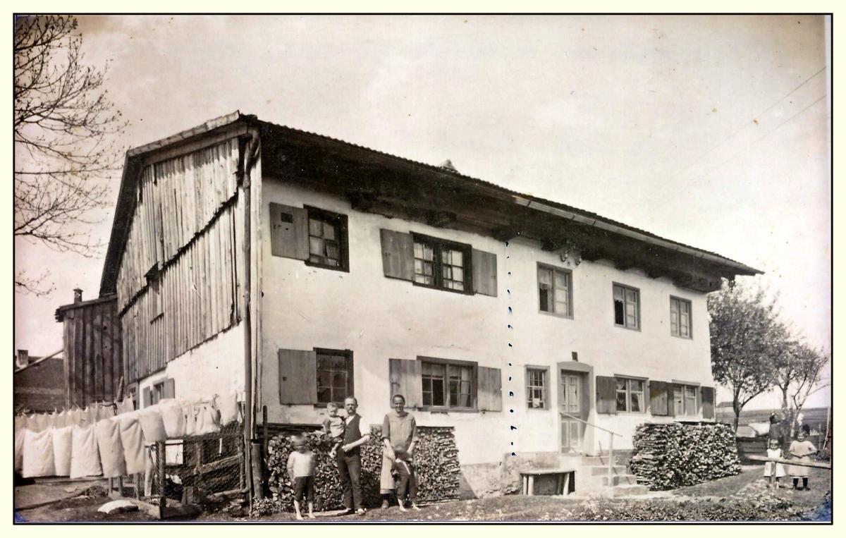 Johann u. Kreszentia Eggensperger vor dem Hof um 1920, alte Hausnummer Einöde 180. Erneuerung des Wohnhauses um 1962. Seit 1949 Hof von von Sebastian und Lucia Send, geb. Eggensperger. Seit 1977 Hof von Martin Send. Das zweite Bild zeigt die Heuernte anno 1956 mit Johanna auf dem Traktor.
