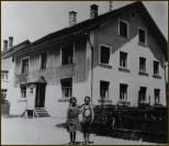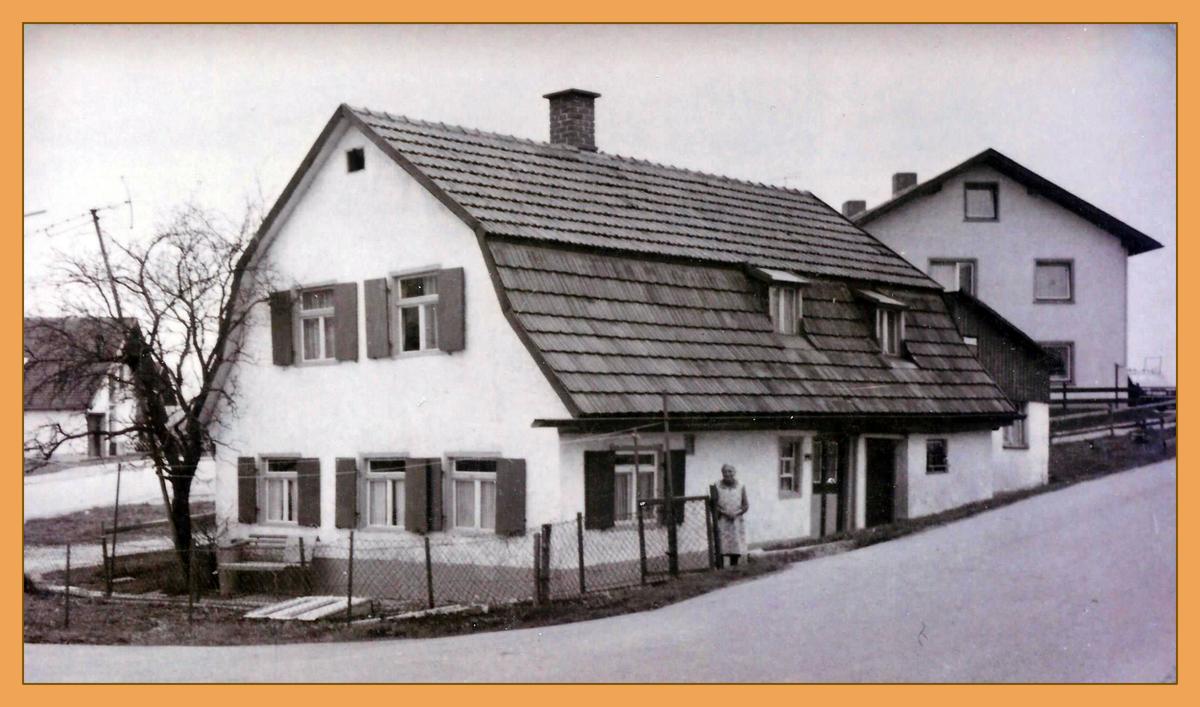 Die Geschwister Maria Friederike und Georg Burger vor dem Haus. 1909 wurde das Haus von Franz Xaver und Maria Mayer als Stüble gebaut.