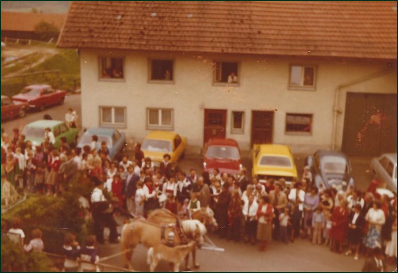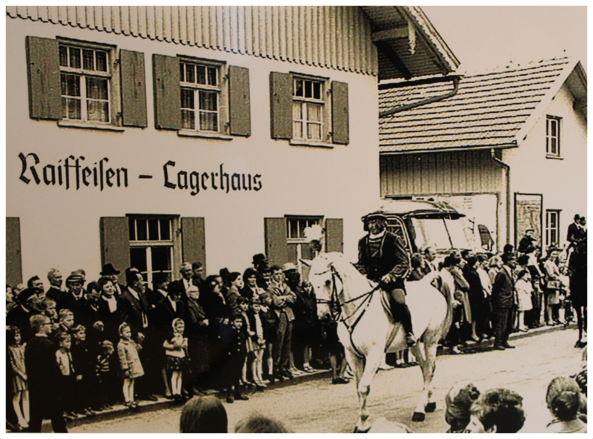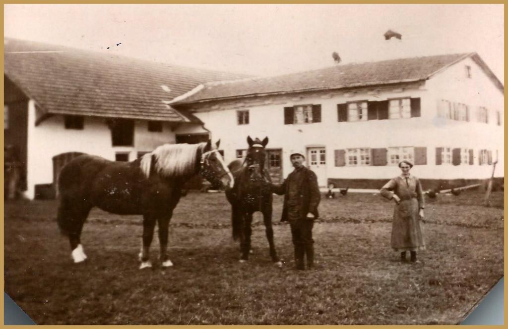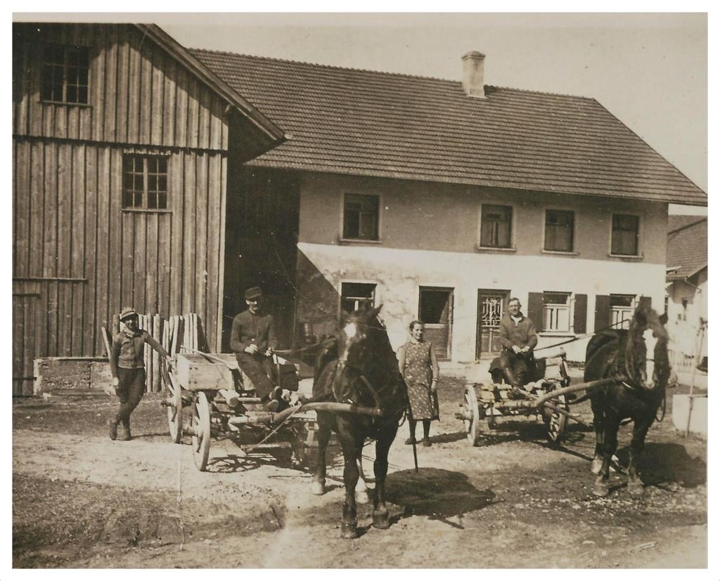 Was heute Traktor oder Auto sind, waren früher Pferdewagen oder Gaiwägele, vorne ein Sitz für den Lenker und dahinter die Ladefläche. War der Fotograf da, durften die Pferde nicht fehlen.