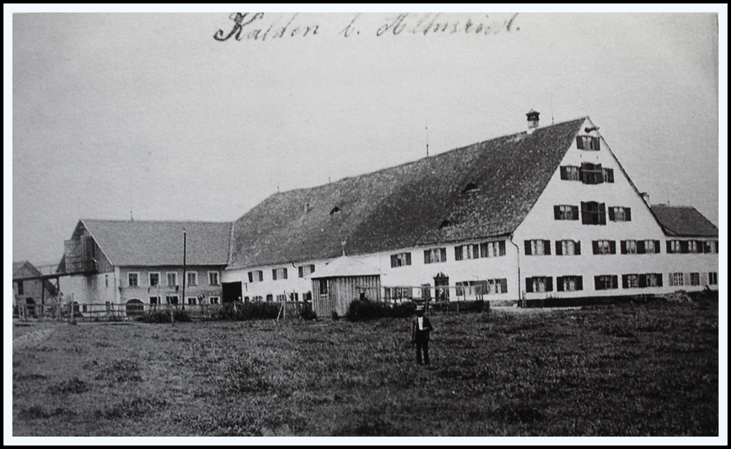Zum Schloss Neukalden gehörte der Gutshof Kalden. Zwei Mädchen stehen vor dem Hof. Das Mädchen links ist Margarete Guggenmos. Unter der mächtigen Linde steht auf einem kleinen Hügel eine kleine Kapelle. Minkolei baute den Hof zu einer Reitsportanlage um. Leider brannte das Anwesen in den Siebzigerjahren ab und wurde nicht wieder aufgebaut.