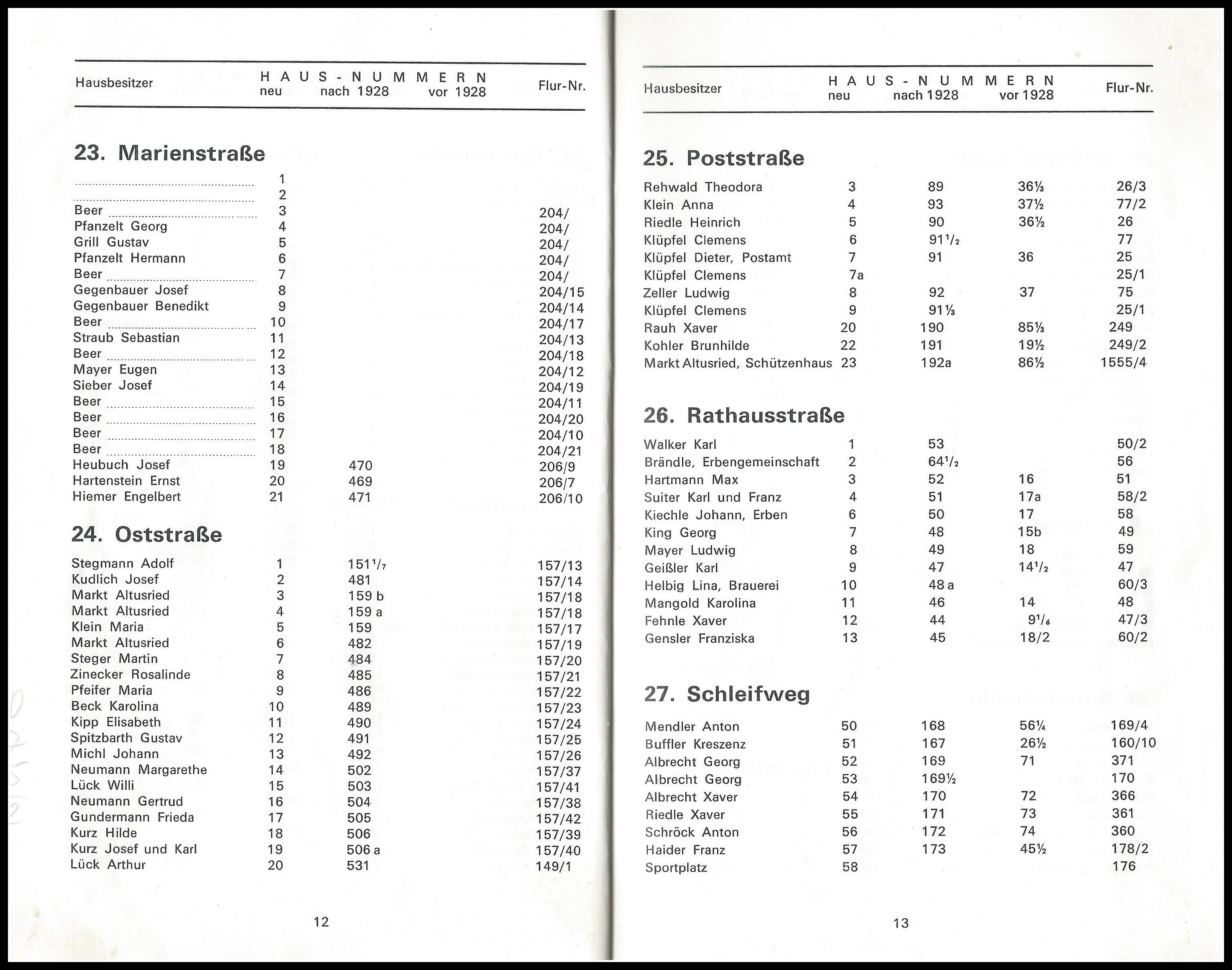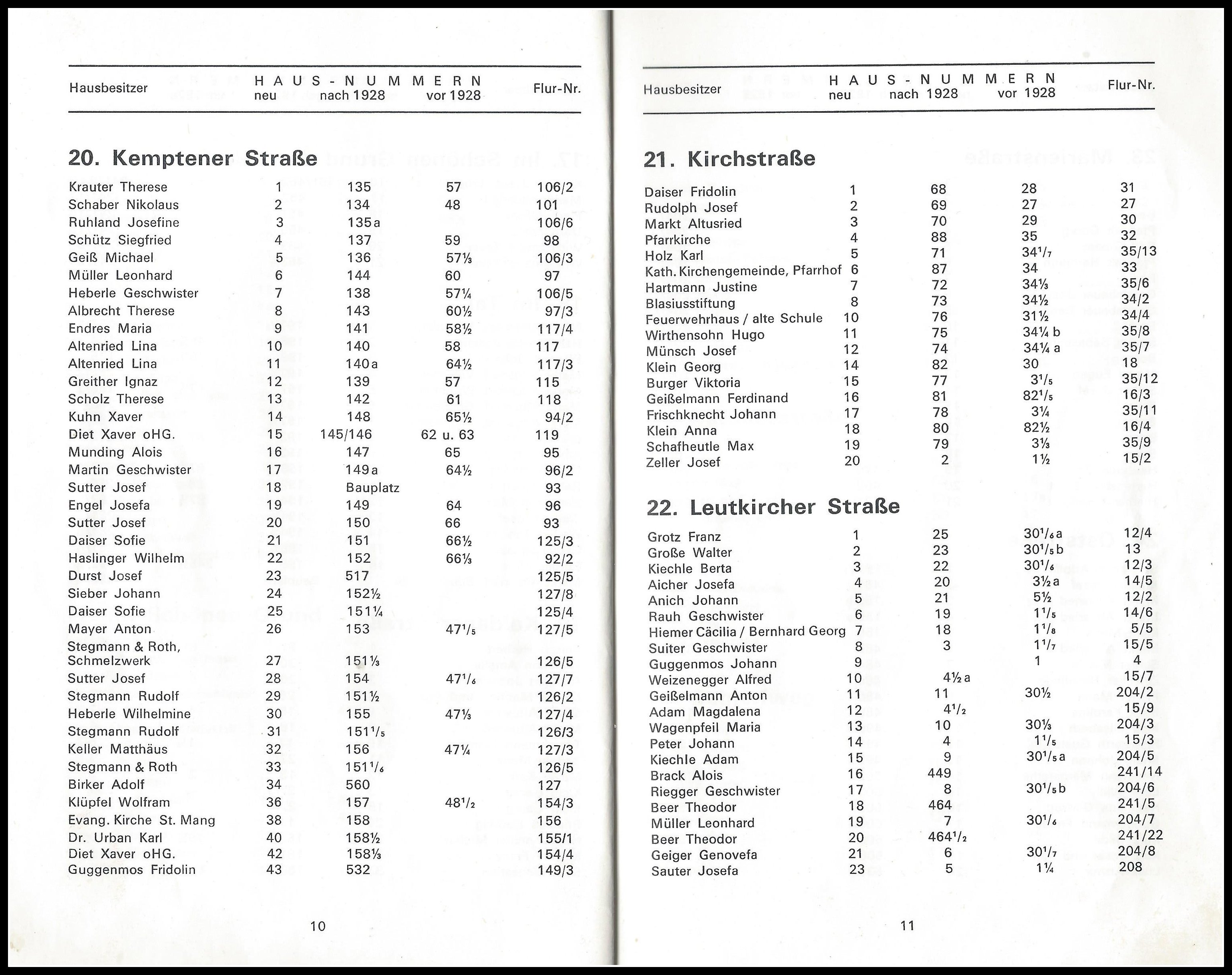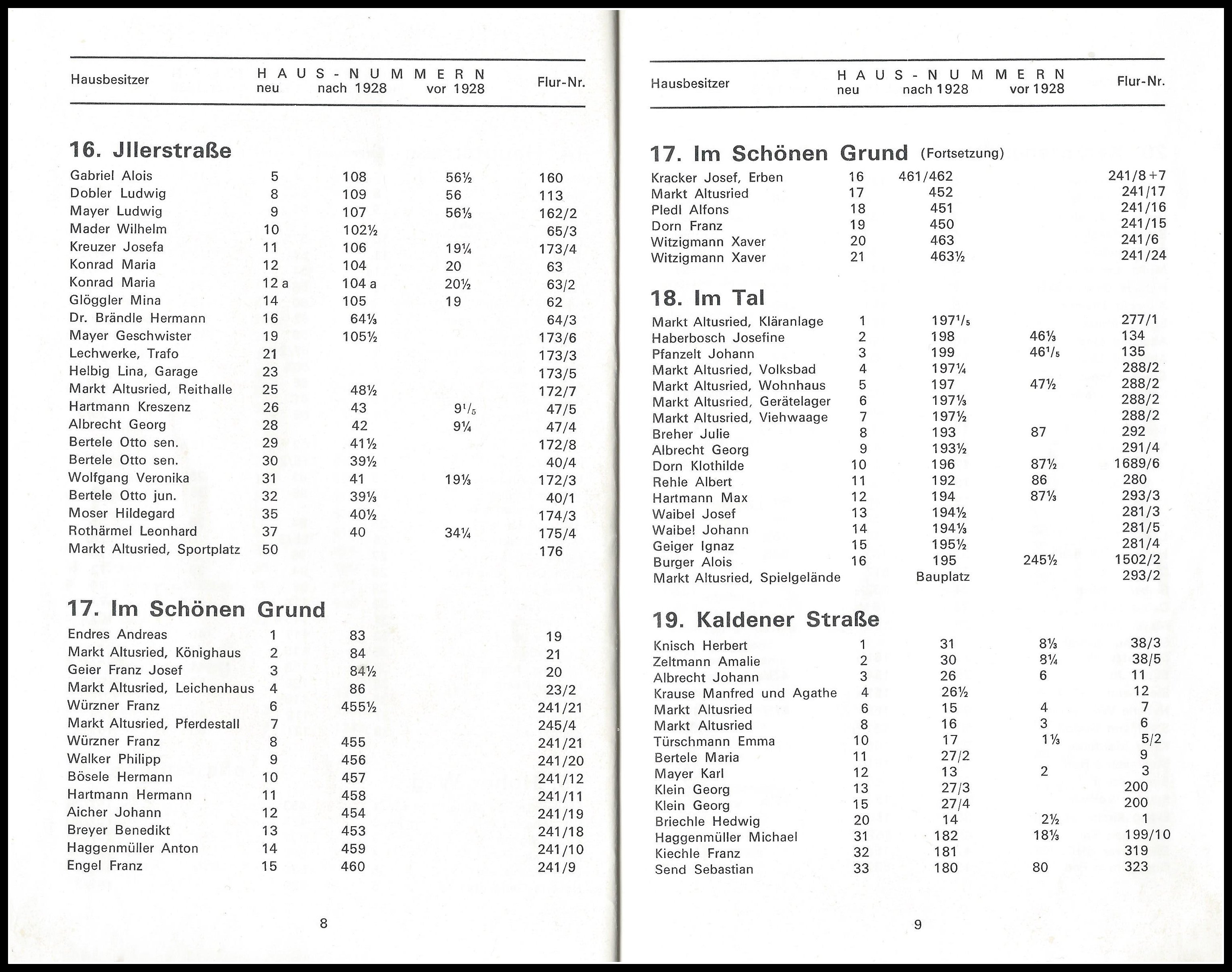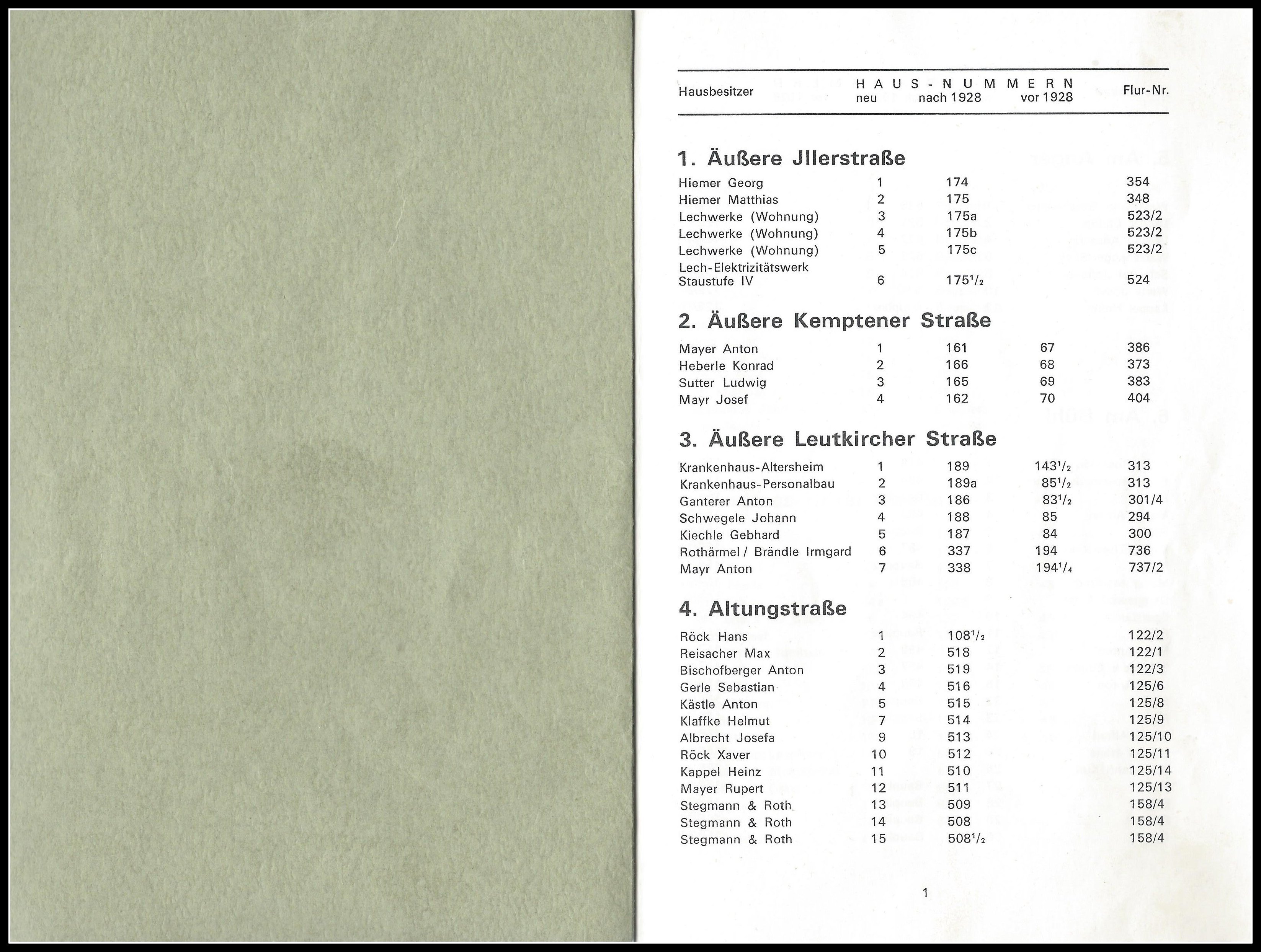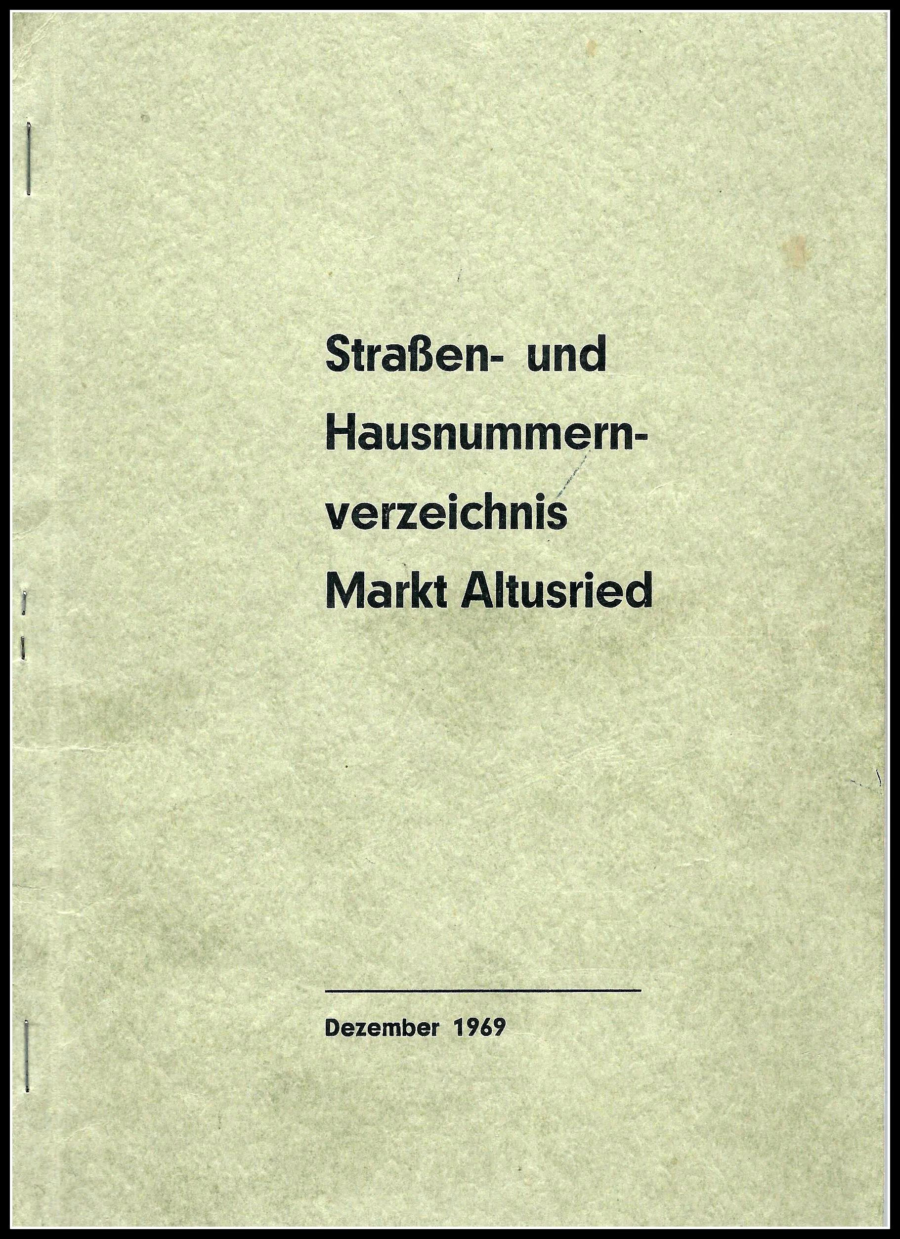 Straßen- und Hausnummerverzeichmis Markt Altusried vor und nach 1928....................................