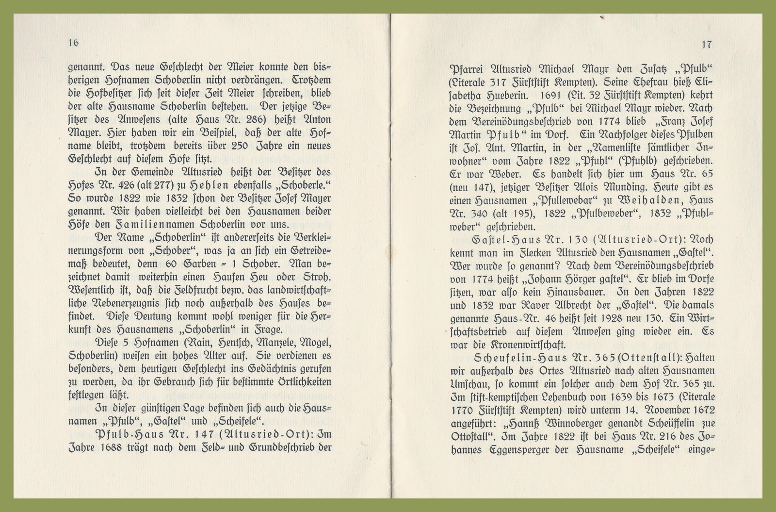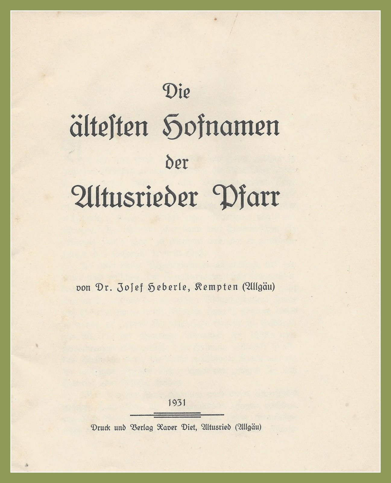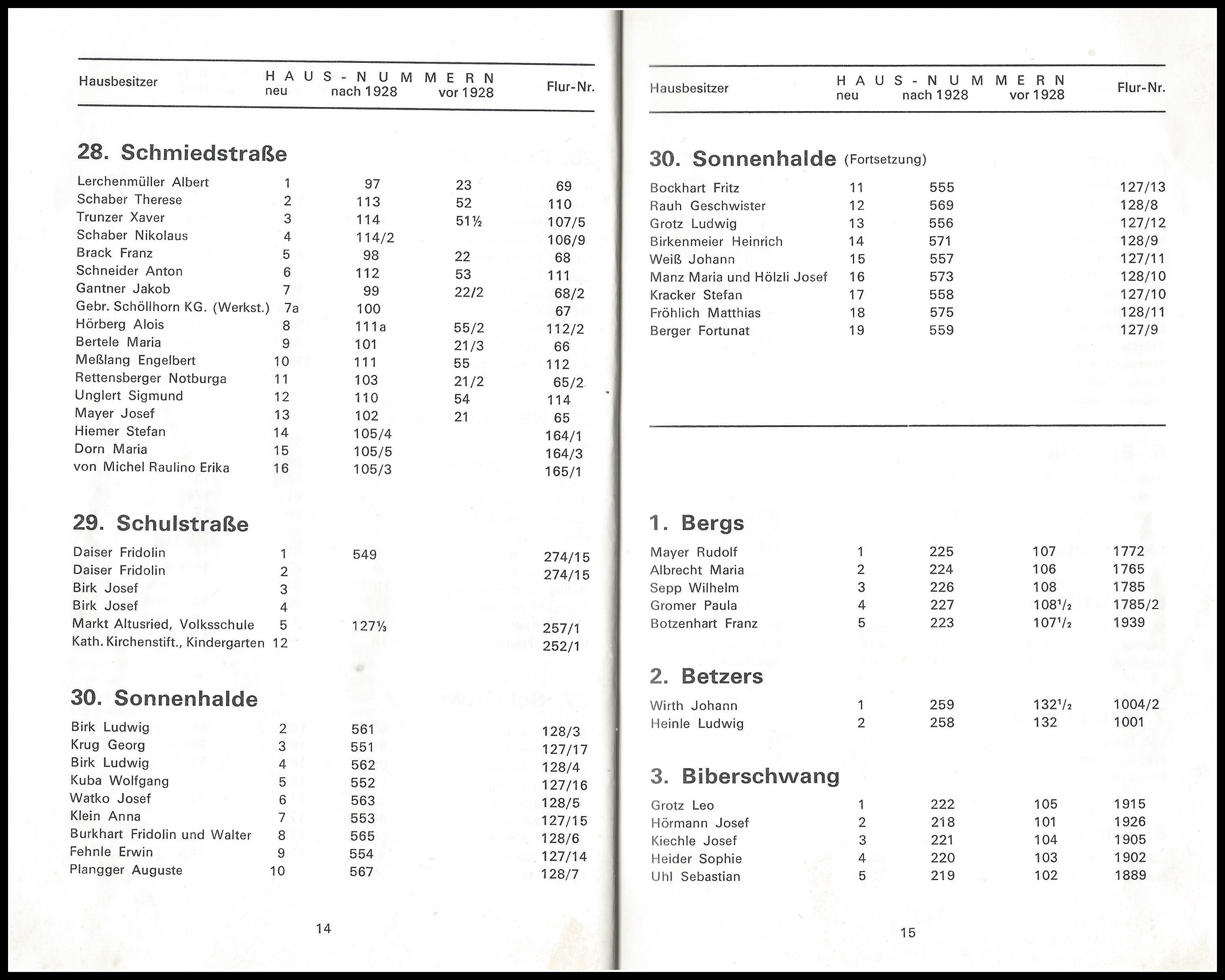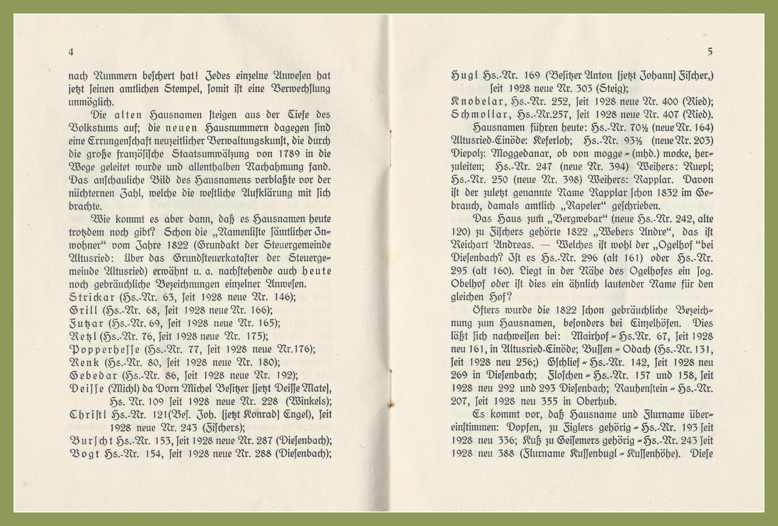 Straßen- und Hausnummerverzeichmis Markt Altusried vor und nach 1928....................................