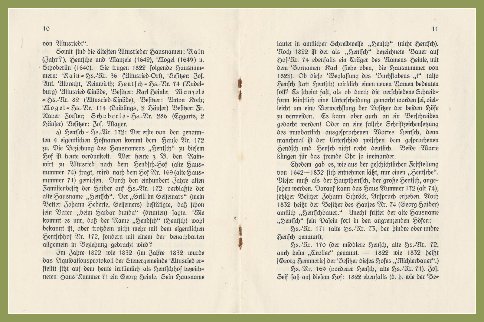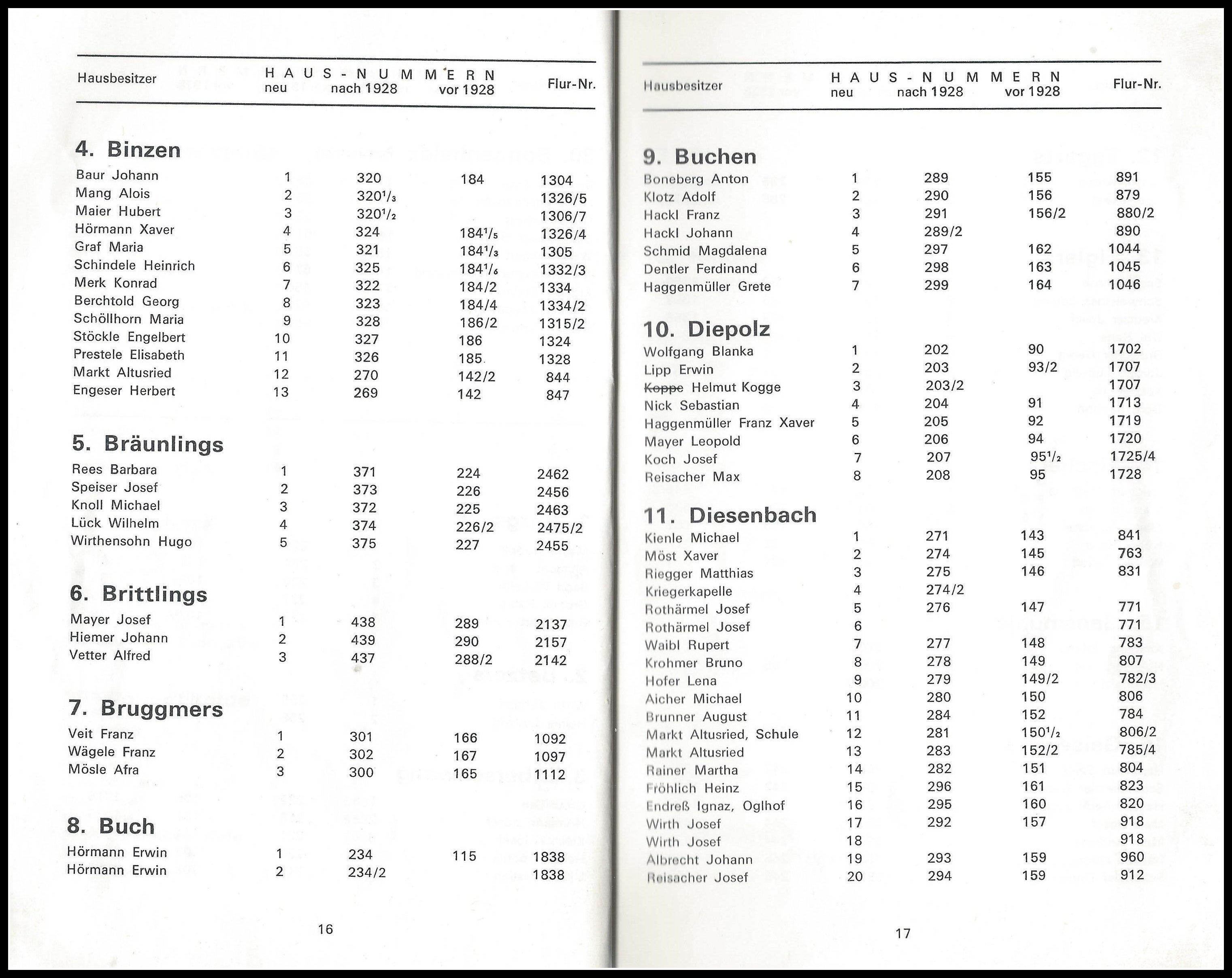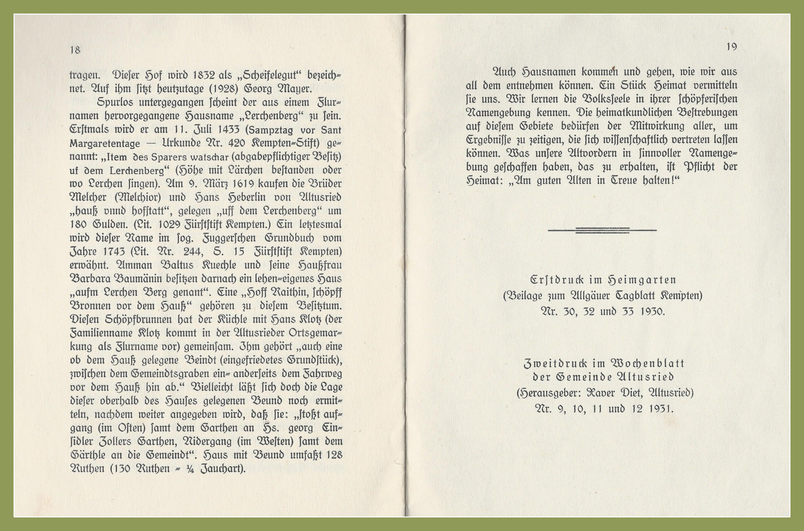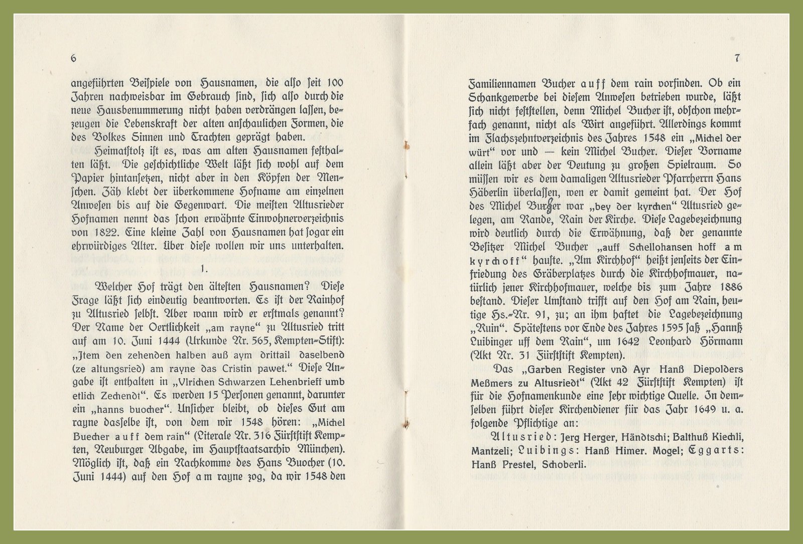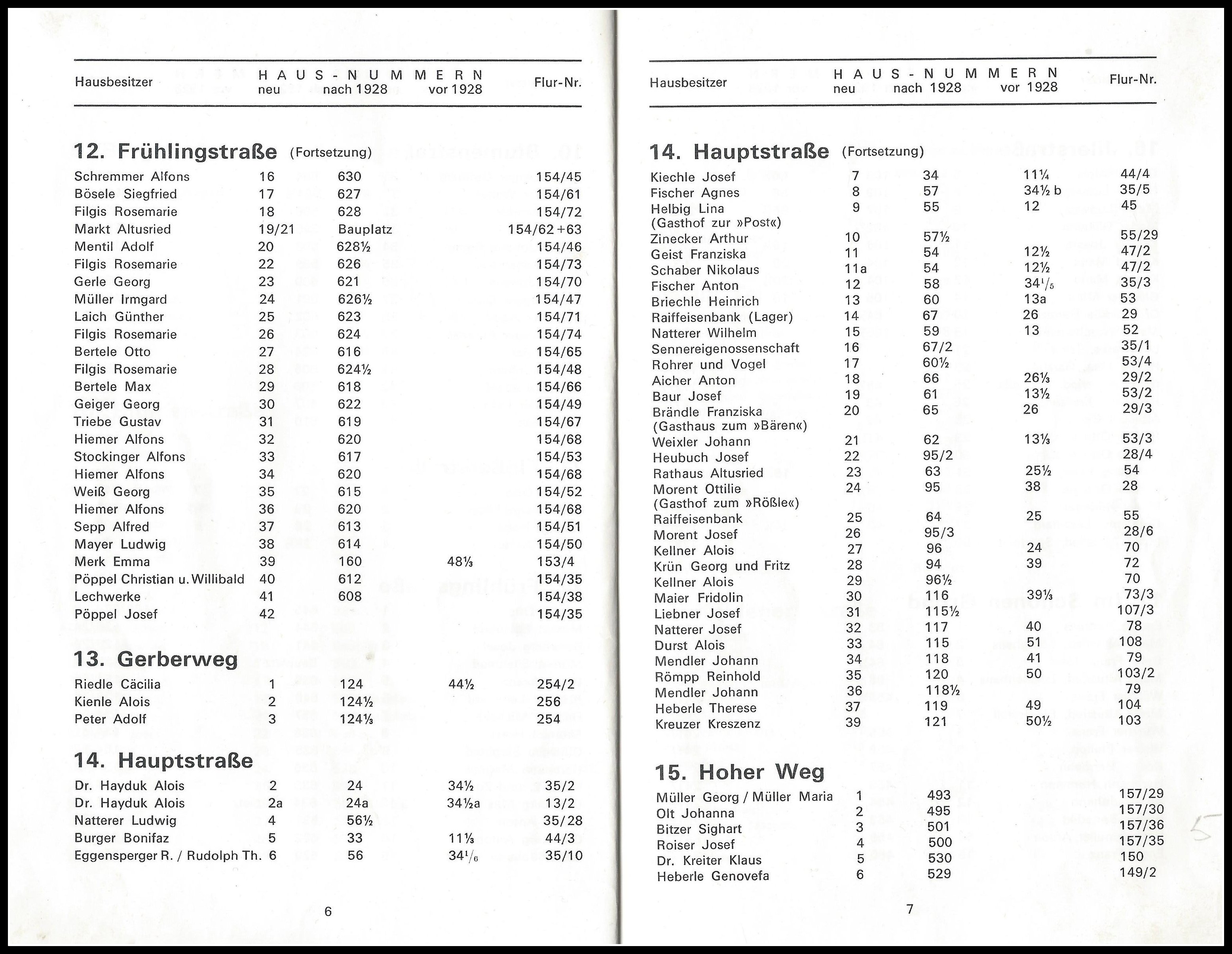 Straßen- und Hausnummerverzeichmis Markt Altusried vor und nach 1928....................................
