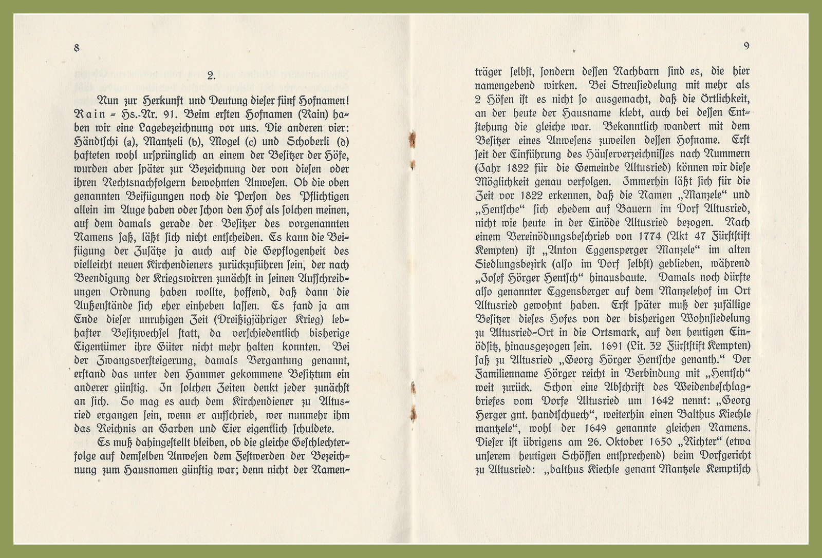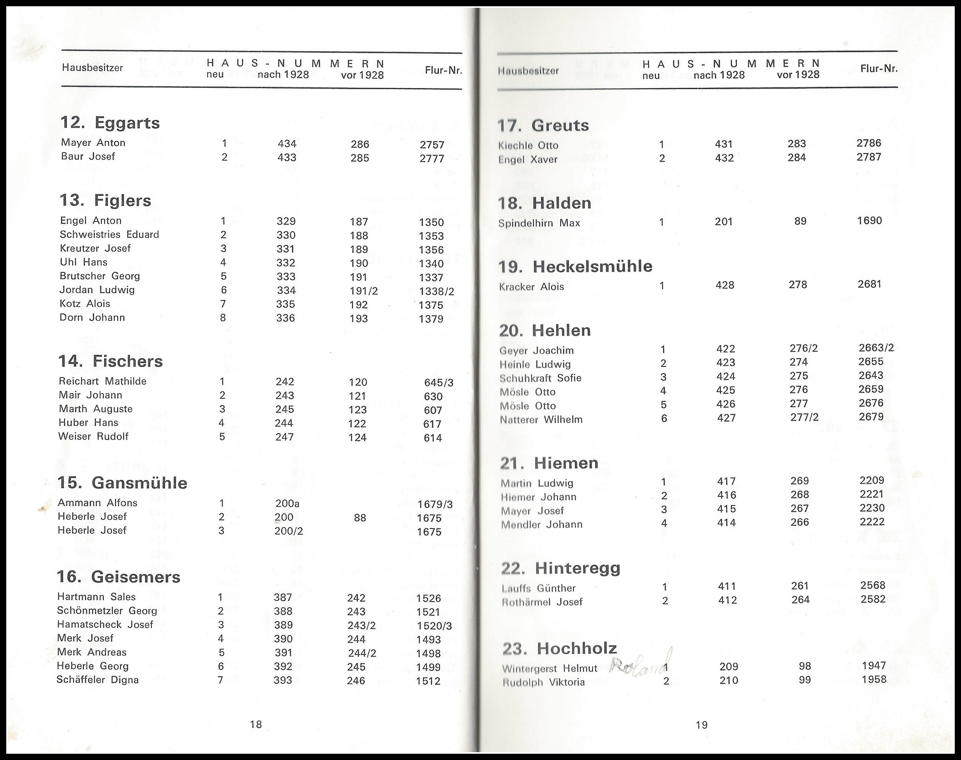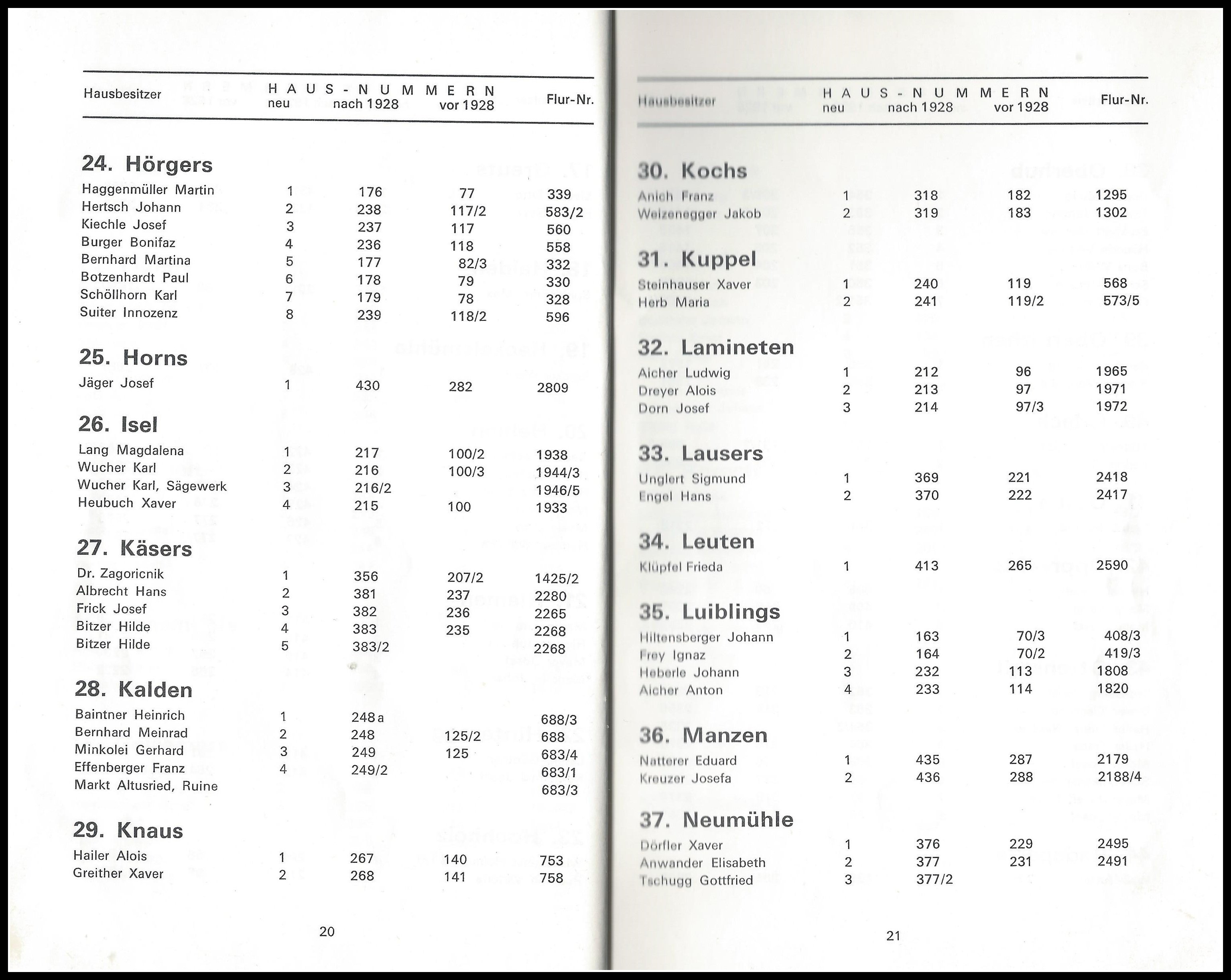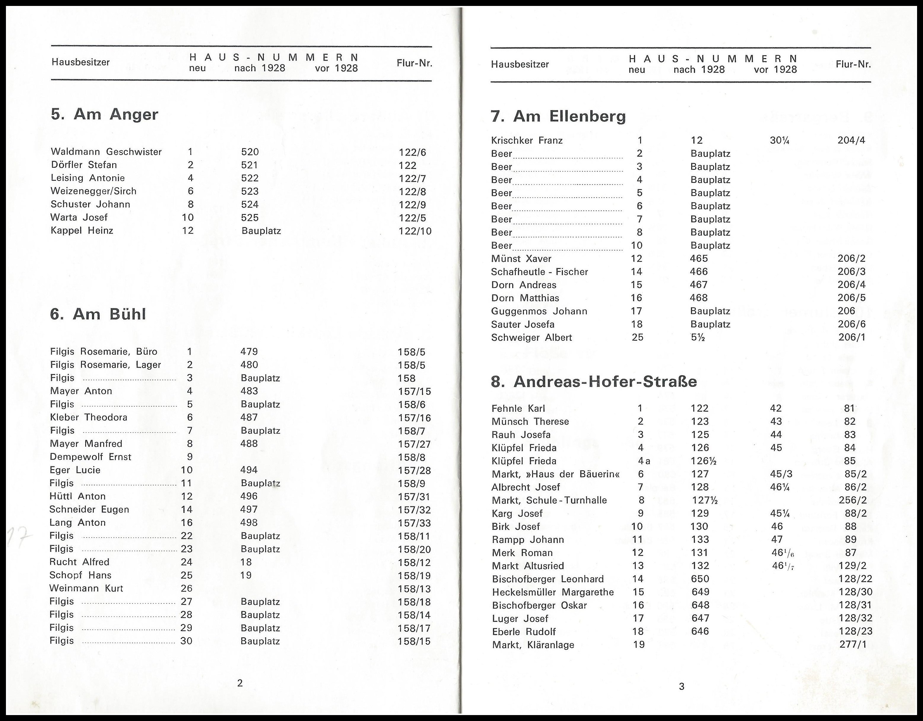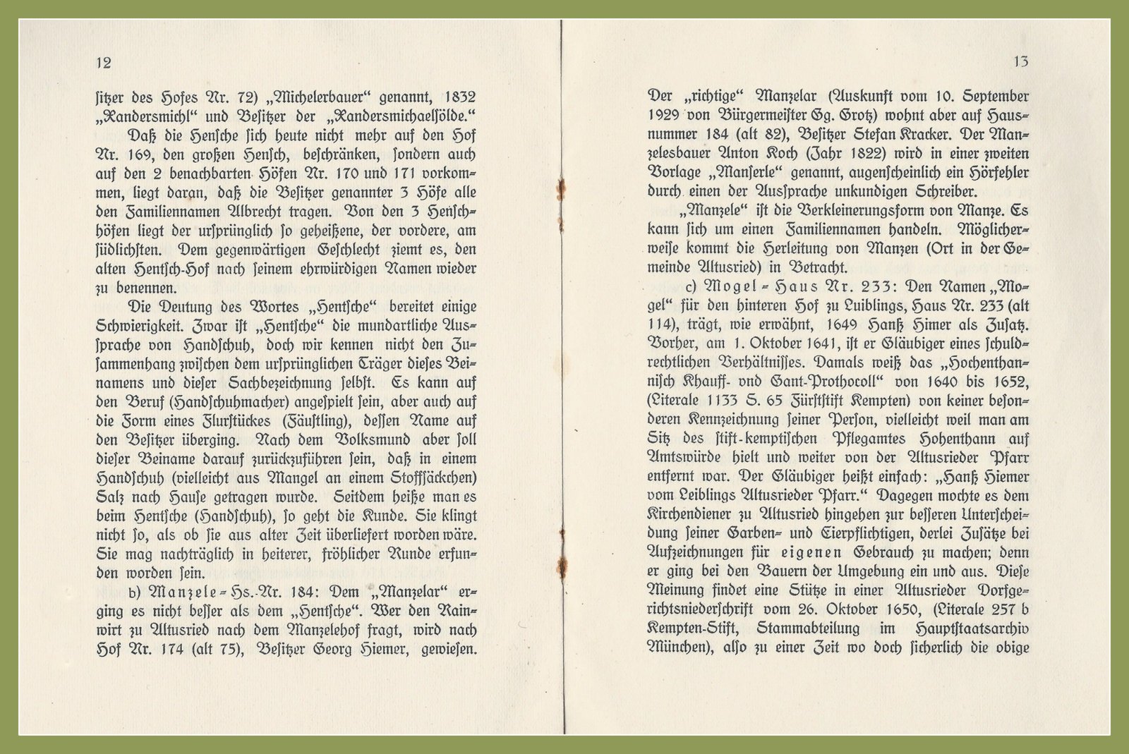 Straßen- und Hausnummerverzeichmis Markt Altusried vor und nach 1928....................................