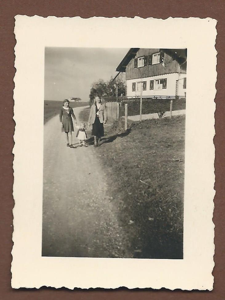 Drittes Bild: Die drei Mayer Schwestern beim jährlichen Ausflug zum Kaffeetrinken in Strobels 1954. Von links, Viktoria, Franziska und Theresia