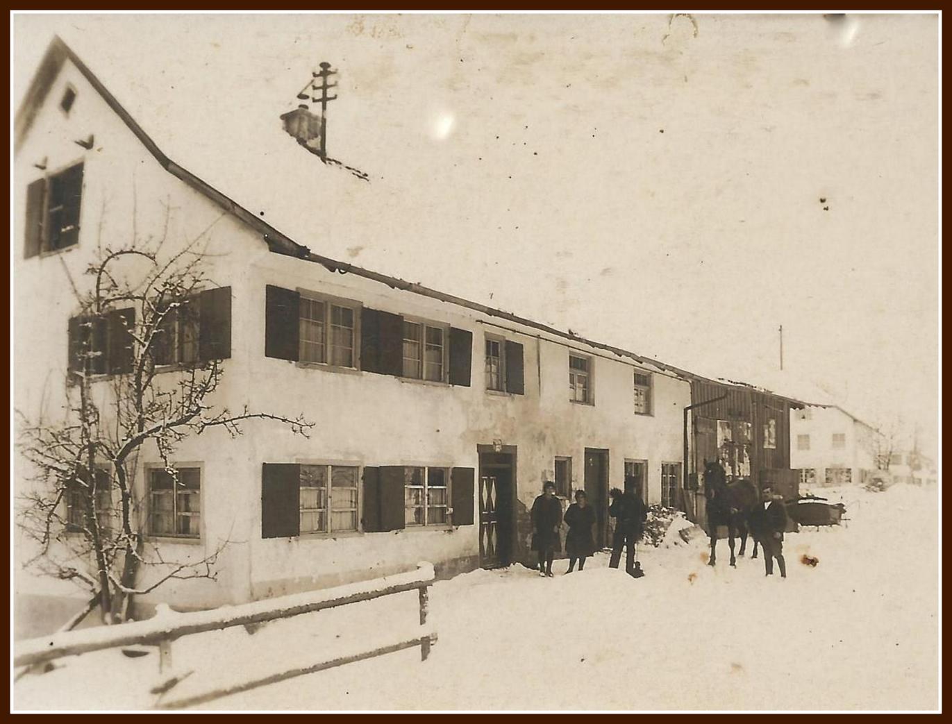 Vier alte Fotos vom Lingg Hof in der Kemptener Straße. An seiner Stelle steht heute die Metzgerei Klüpfel.