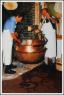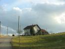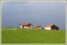 Stattlicher Hof bei Diepolz . Vor dem Hof, zwei Wagen, drei Pferde, drei Männer,drei Frauen und eine Schar Gänse. Auf dem Hausdach sind drei hohe Blitzableiter montiert. Sie gehörten früher zur Standardausrüstung eines Bauernhofes. Der Erfinder des Blitzableiters war der Amerikaner Benjamin Franklin (1706-1790). Er machte sich sowohl als Politiker wie als Wissenschaftler einen Namen. Durch seine Experimente mit einem Drachen während eines Gewitters erkannte er die elektrische Natur des Blitzes. Seitdem sicherte man alleinstehende Gebäude mit Blitzableiter. Eine Maßnahme, die jedem sehr sinnvoll erschien. Allerdings hat sich nach zweihundert Jahren an Hand von Statistiken herausgestellt, dass dadurch die Sicherheit nicht erhöht wird.