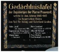 1. Gedächtnistafel der Angehörigen der Pfarrei Frauenzell, welche in den Jahren 1805 - 1815 im bayerischen Heere den Tod für König und Vaterland fanden