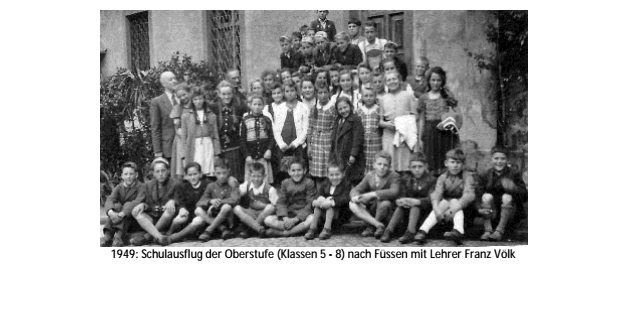 1945 die Schule in Frauenzell am 23.04. wegen des Einmarsches der Franzosen geschlossen wird; in beiden Schulsälen sind bis Juli 1945 befreite kriegsgefangene Serben untergebracht,