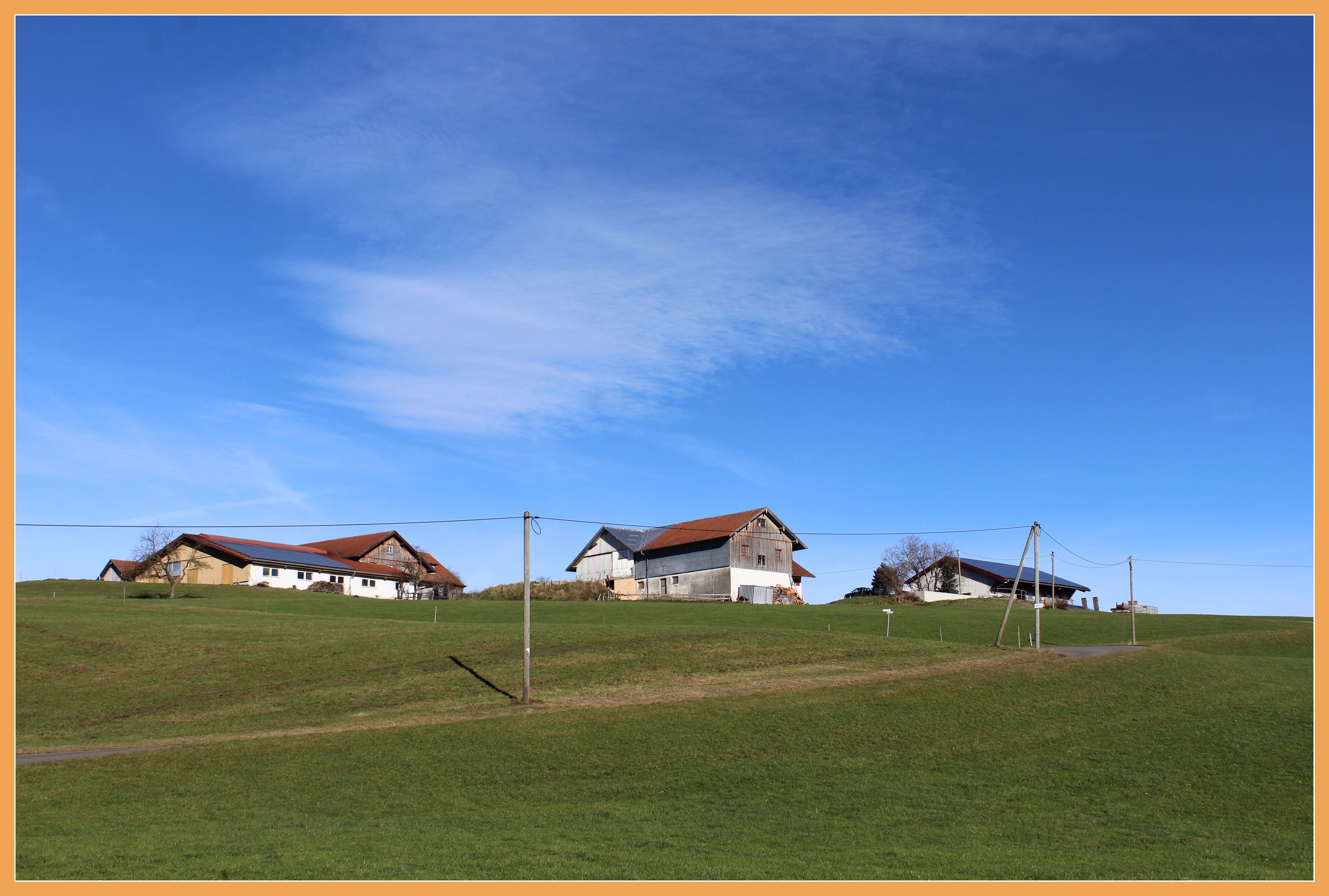 Der Weiler Hiltensberg liegt auf einer Hügelkuppe am Rande des Illertales.