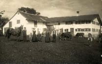 2. Zwanzig Jahre später war der alte Widerkehr zu klein und wurde durch einen größeren hölzernen Anbau ersetzt. Vor dem Hof stehen: Josef , Ignatz , Josefa, Viktoria und Maria Köcheler