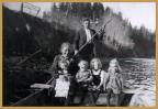 Acht Endres Kinder auf dem Landesteg. Der Steg erleichterte den Kähnen und den Flößen das Anlanden. Für die Kinder war das Stehen auf der Landebrücke eine kleine Mutprobe.