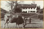 Es ist Vorfrühling. Die Bäume sind noch ohne Laub. Vier Kühe weiden vor dem Riedhanserhaus. Wäsche flattert an der Leine. Am Haus lädt eine Füllebank ein zum Verweilen. - Die Milch wurde jeden Tag über die Iller nach Buch gebracht und kam von hier aus weiter zur Käserei in Luiblings. Manchmal war aber die Iller zugefroren. Dann musste die Milch im Hause bleiben und wurde dort verschafft.