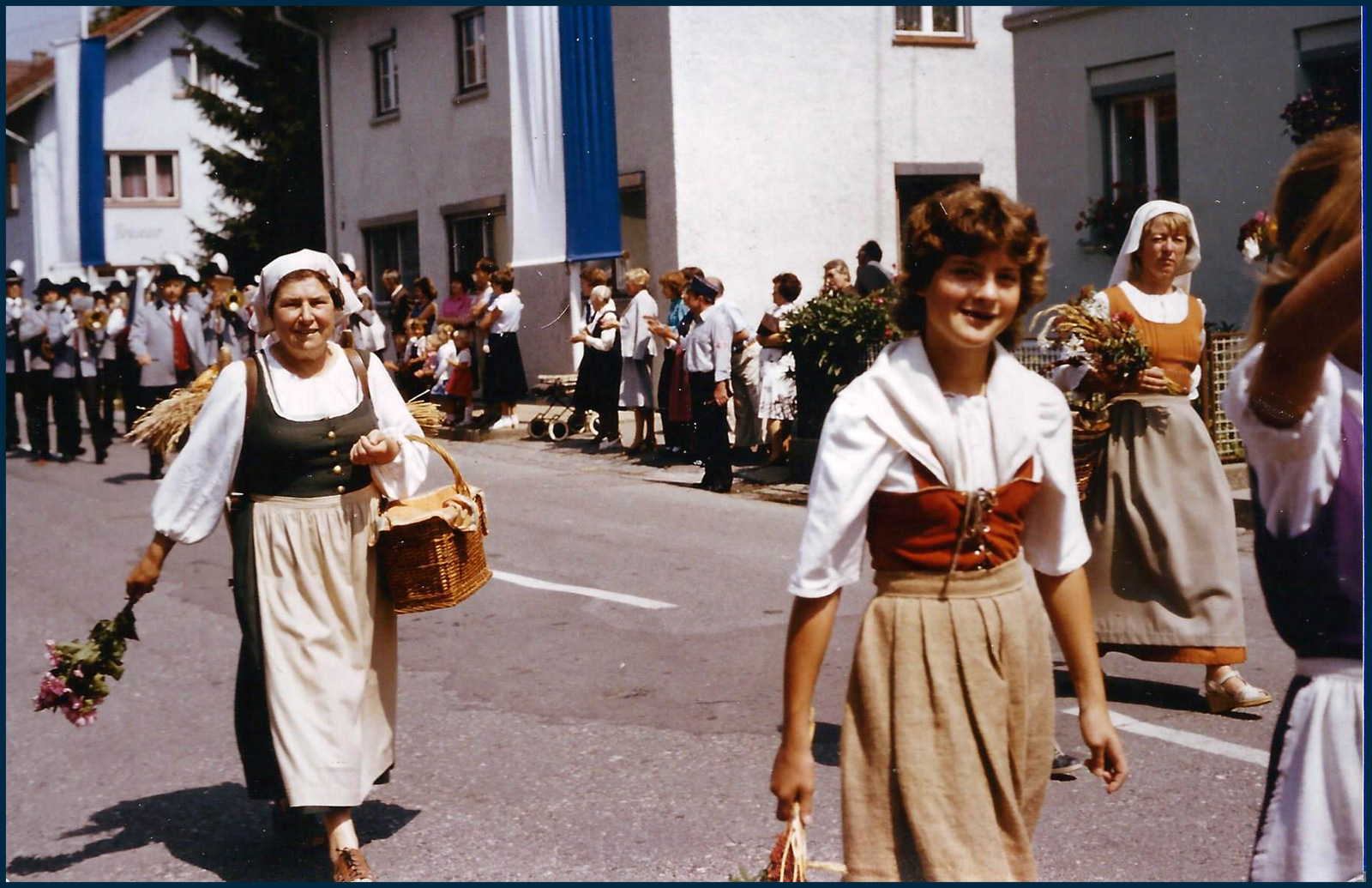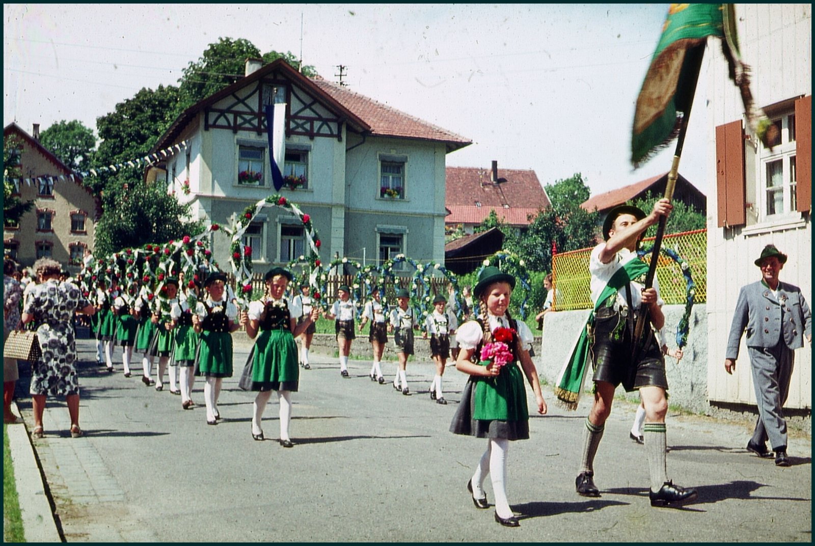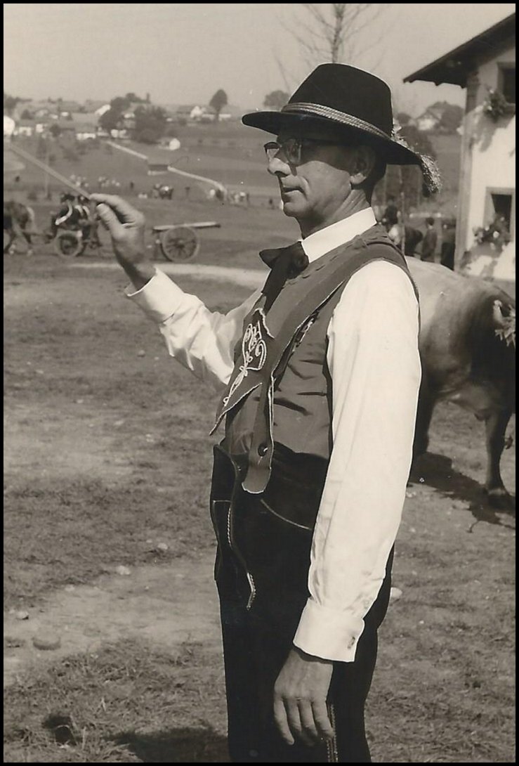 - Trachtenverein, rechts Stefan Dörfler, im Hintergrund, das Knisch Haus
