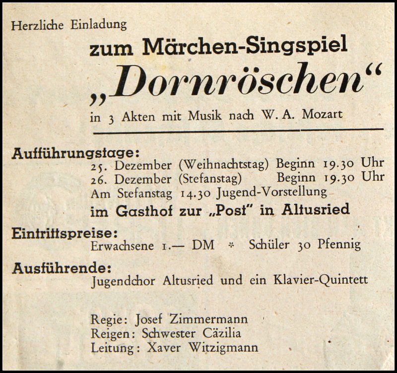 1952 Aufführung des Märchen - Singspiel Dornröschen . Regie Joseph Zimmermann, Leitung Xaver Witzigmann