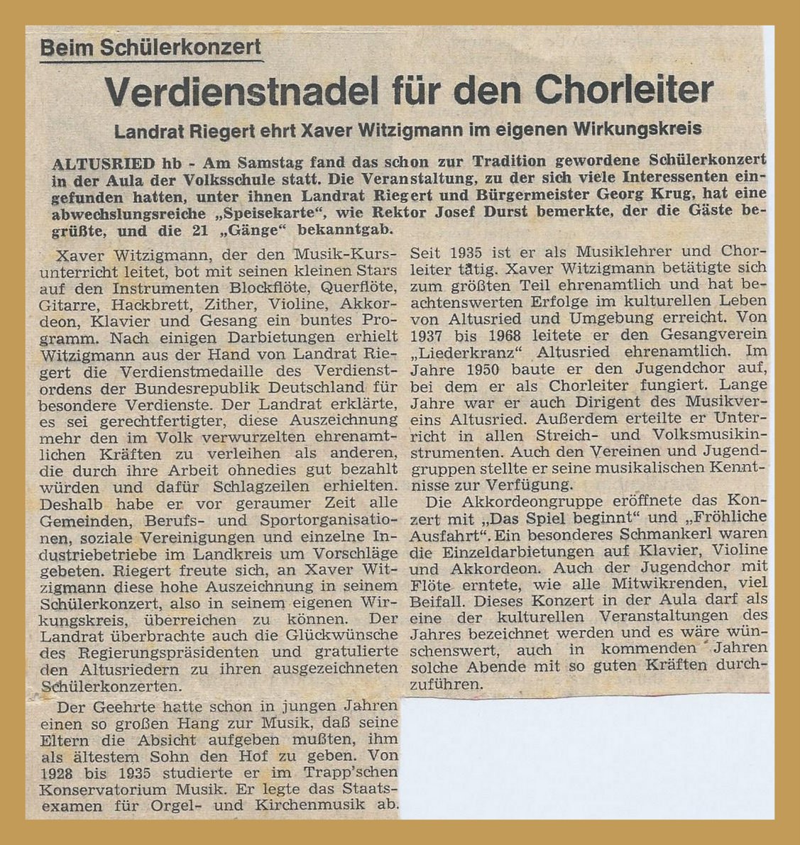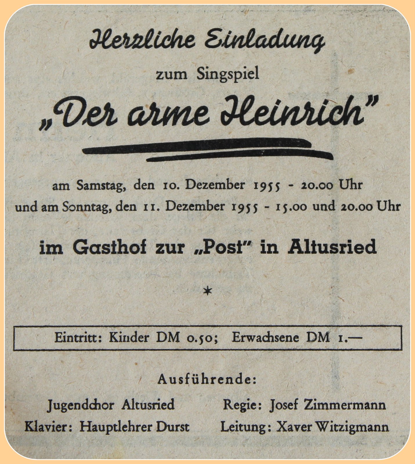 Nach dem Krieg gründete Witzigmann einen Jugendchor. Mehrere Singspiele wurden aufgeführt.
