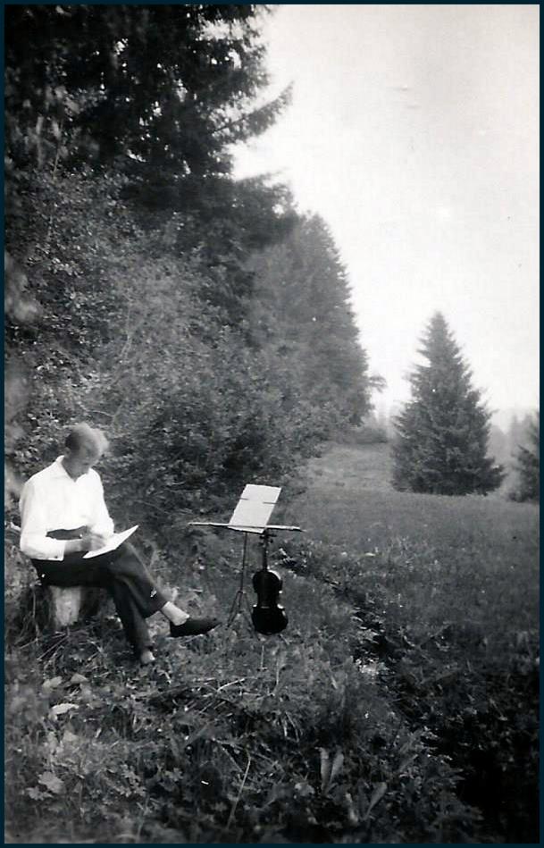 Mit der Geige hoch über der Iller 1932. Der Fotograf hat zwei Bilder vereinigt.