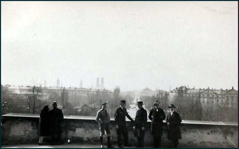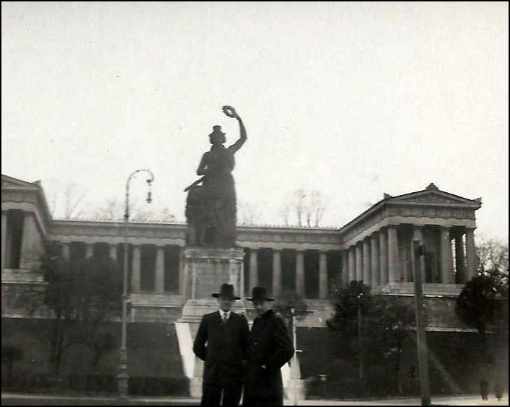 1935 Studienzeit in München: Vor dem Friedensengel. Blick vom Maximilianeum über München. Vor der Bavaria. Fahrt auf der autoleeren Autobahn A8.