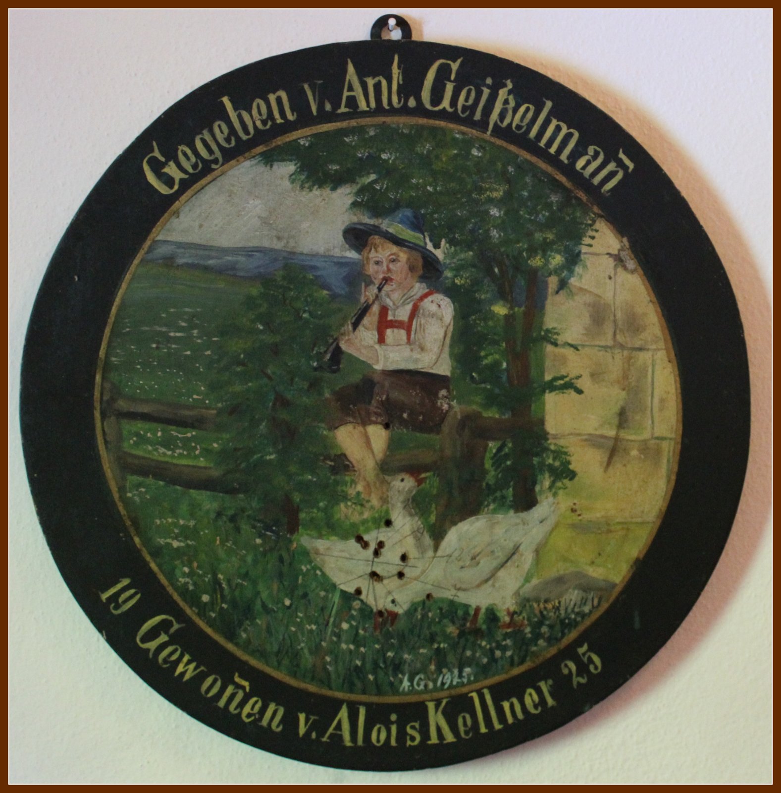 1925 Alois Kellner sen. gewinnt eine Schützenscheibe. Gestiftet hat sie Anton Geißelmann.