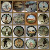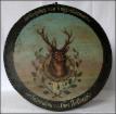 1898 Gestiftet von H. Bauschmid und gewonnen von Oswald Zeller. Szenen aus der Jägerei. Jäger mit erlegtem Adler, schlafender Fuchs, Hirschkopf mit Geweih, Hund und Gams.
