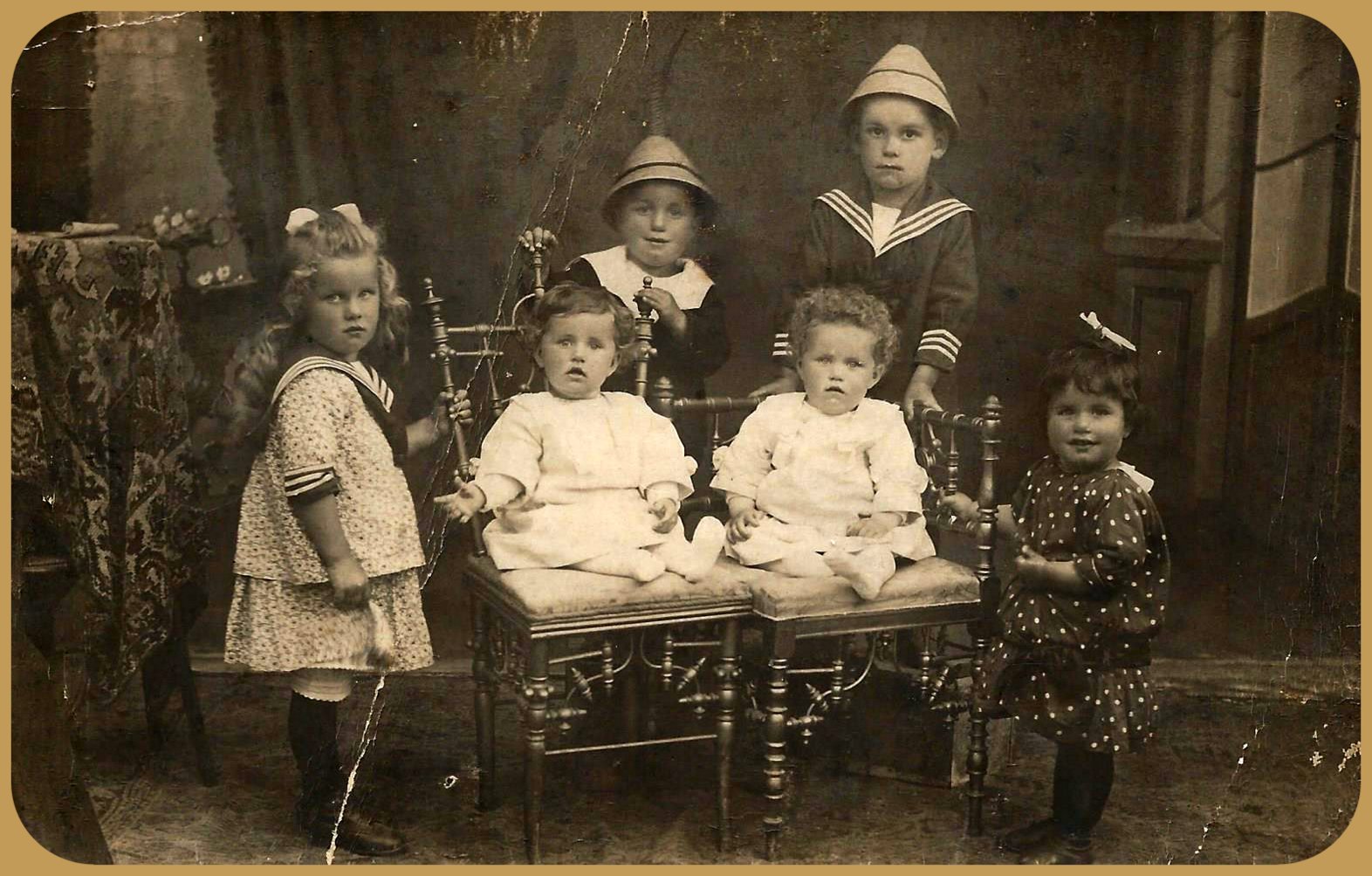 Von links: Josefa,Georg, Innozens,Vroni Sitzend: Maria, Katharina