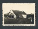 Das Ehepaar Albrecht vor dem Hof. Auf der Giebelseite der Brunnen mit der Schwengelpumpe.
