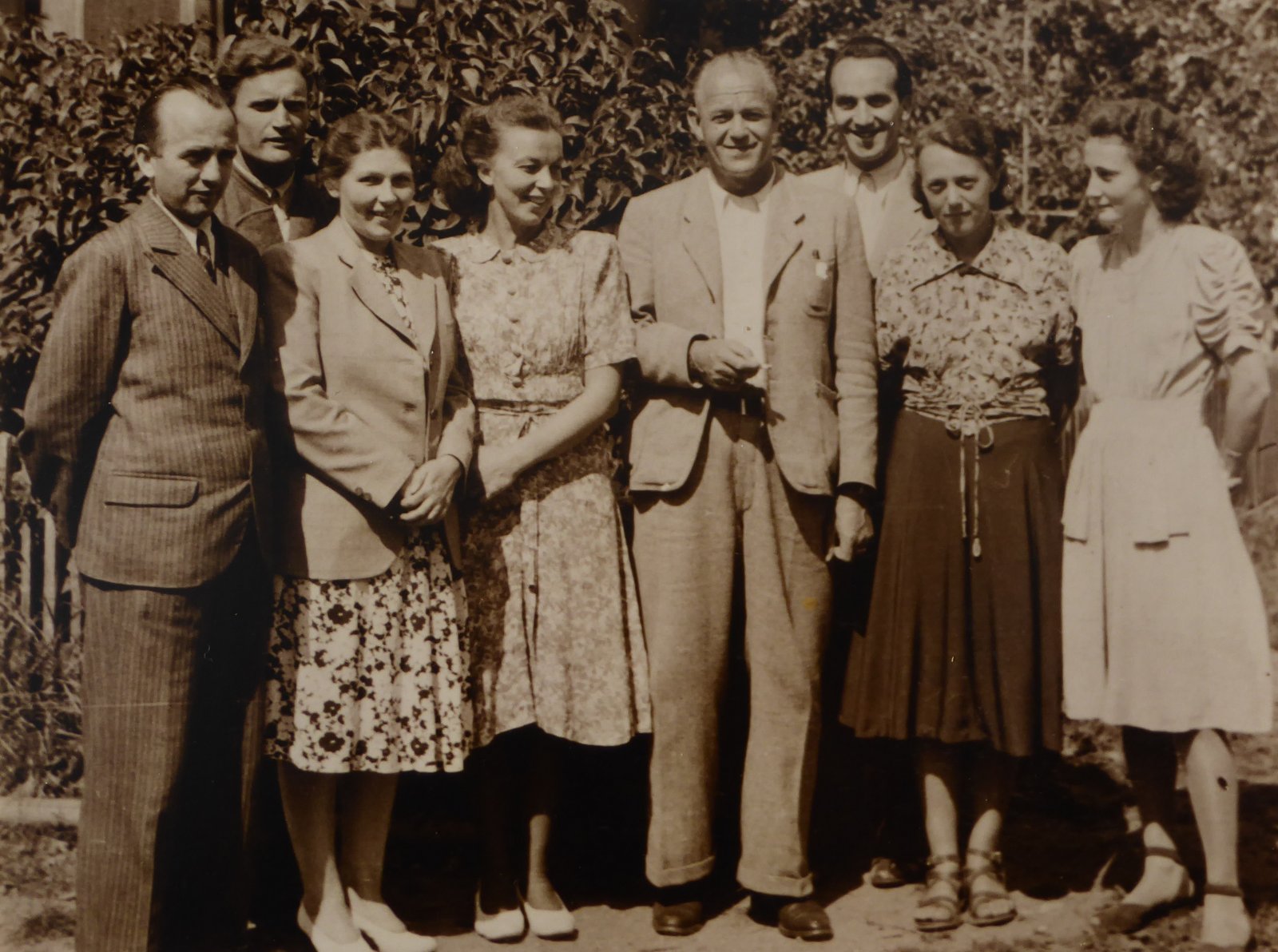 - Josef Durst, Sitka, Auguste Dupp, Emil Ahne und Frau Natterer. Vier Kollegen sind noch nicht identifiziert.