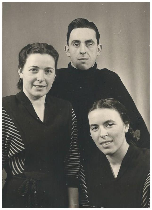 - 1943 Erstkommuniontag. Am Eingang. Vorne die drei Hartmannkinder: Gusti, Elfriede und Max.