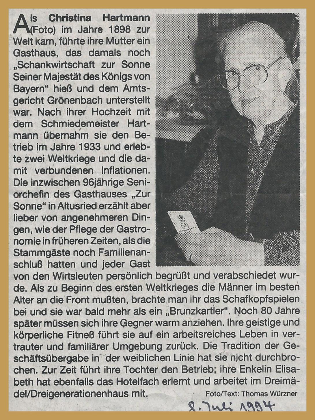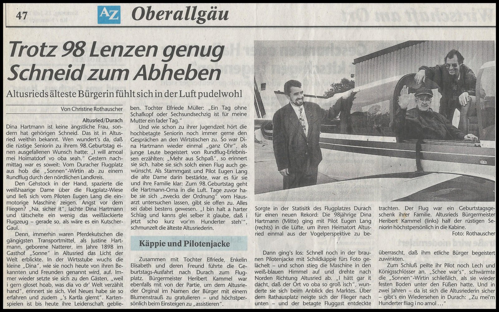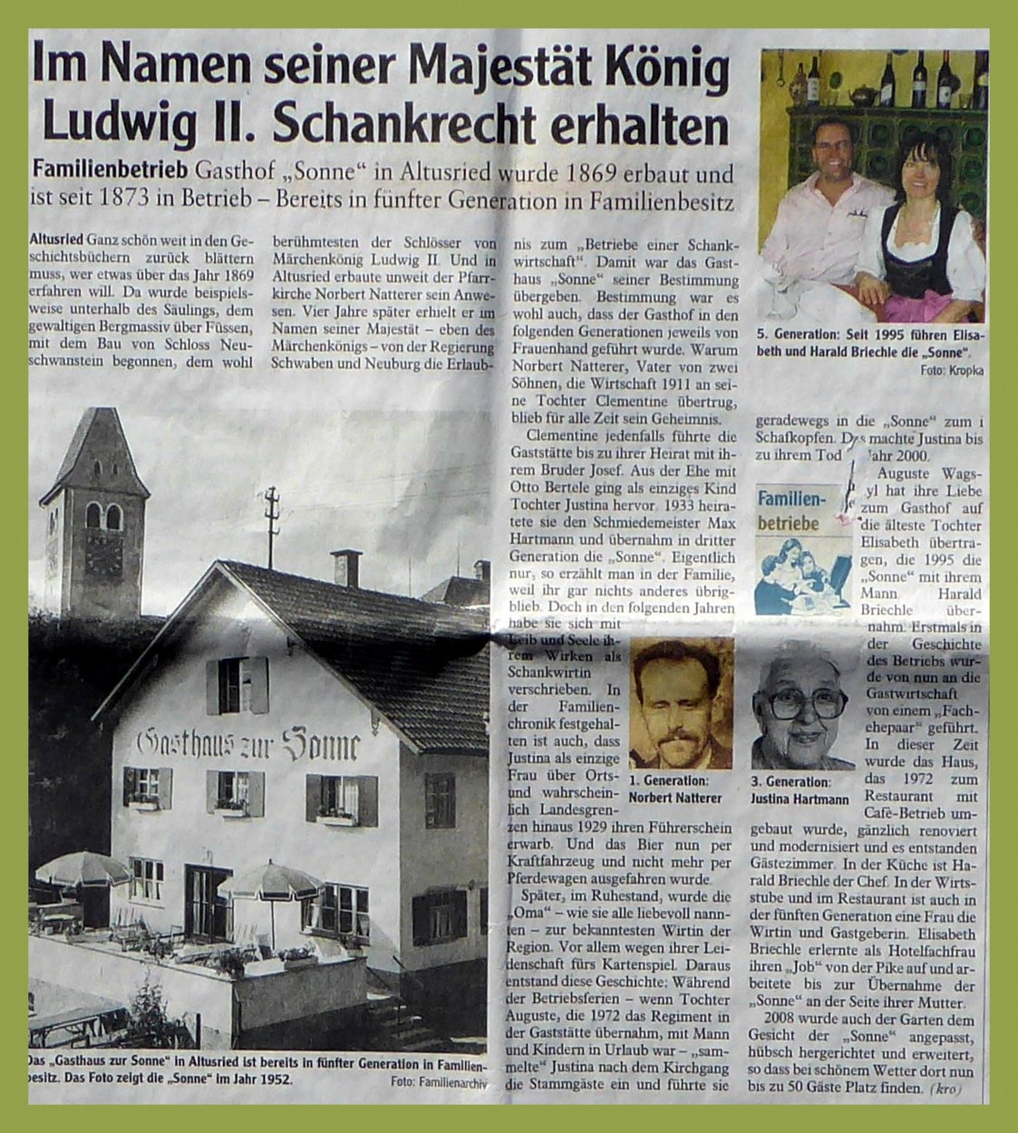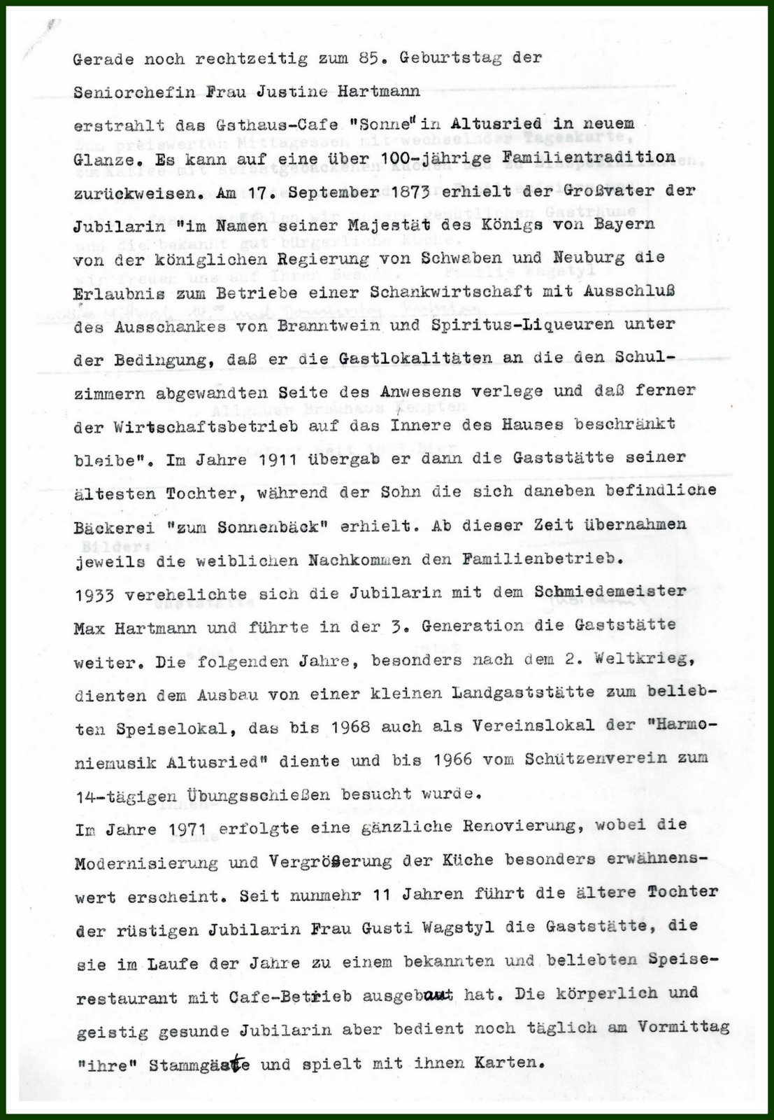 Fotos aus dem Gästebuch der Jahre 1955 und 1956 ,viele Saarländer kamen damals nach Altusried. Zu sehen sind auch die Gastgeber Hartmann ( Wirt und Schmiedemeister ) , seine Frau Justine Hartmann und die beiden Töchter Gusti und Elfriede. - Bild 3. Im Hintergrund die Sennerei, die später zum Rathaus umgebaut wurde. - Bild 4. Justine in der Mitte.