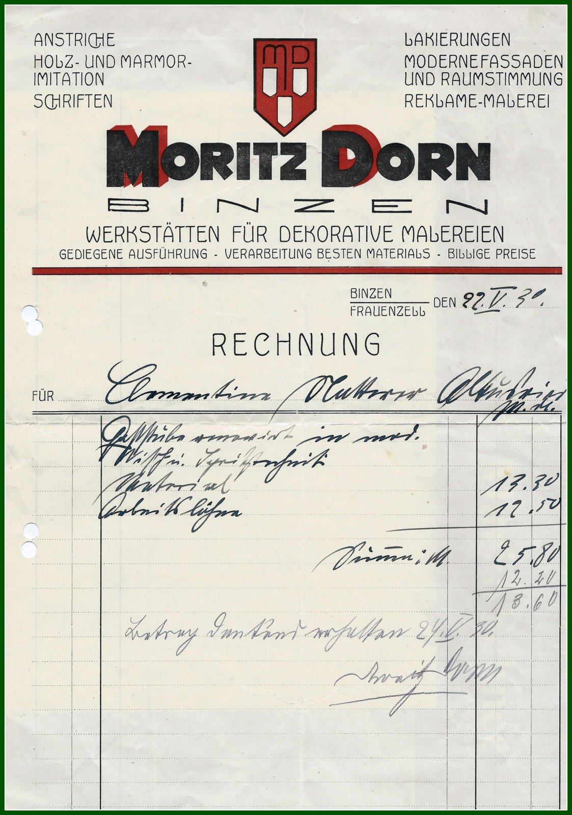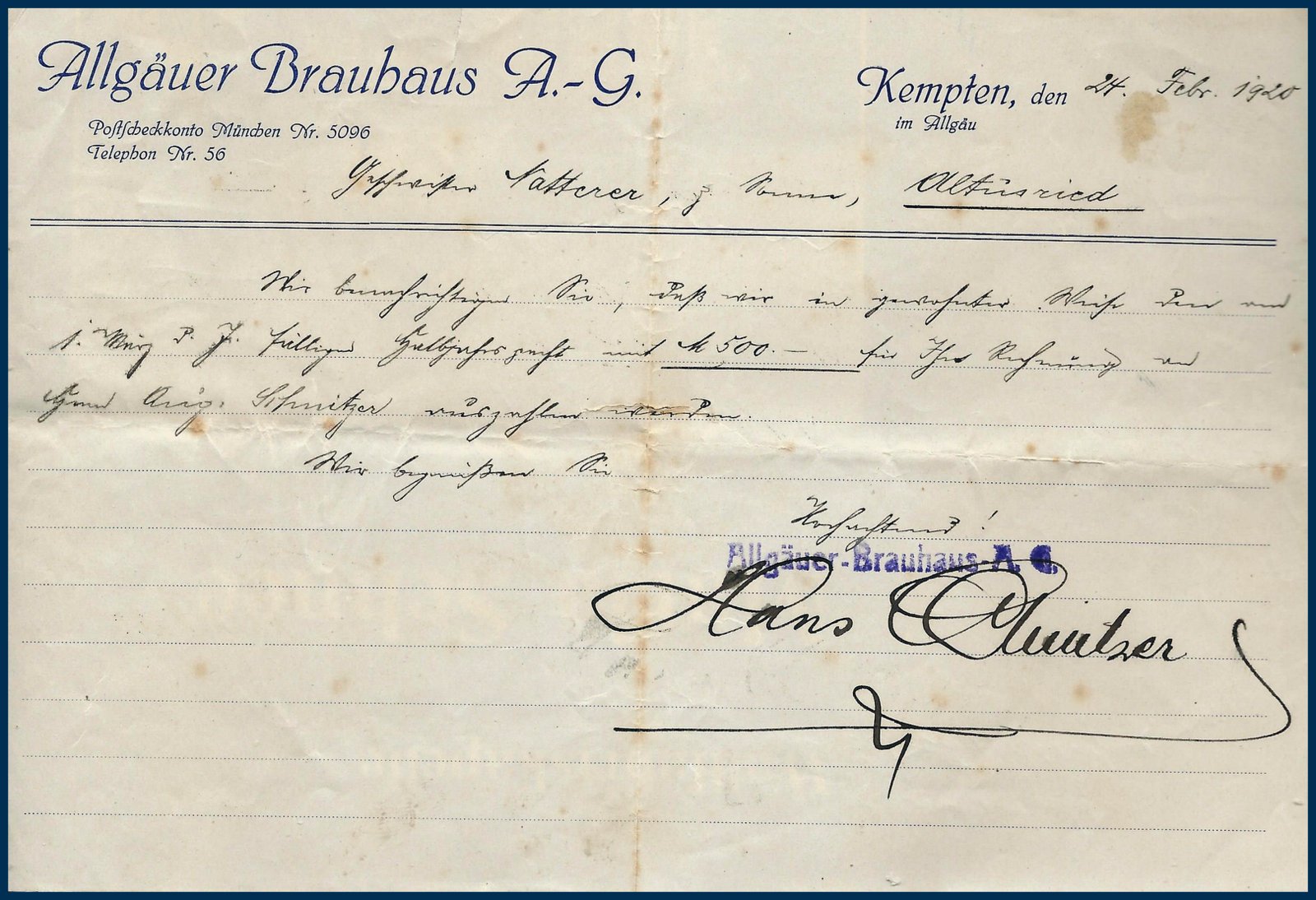 Alte Rechnungen aus den Zehner- und Zwanzigerjahren des vorigen Jahrhunderts, gestellt an Klementine Natterer, Gasthaus Sonne.