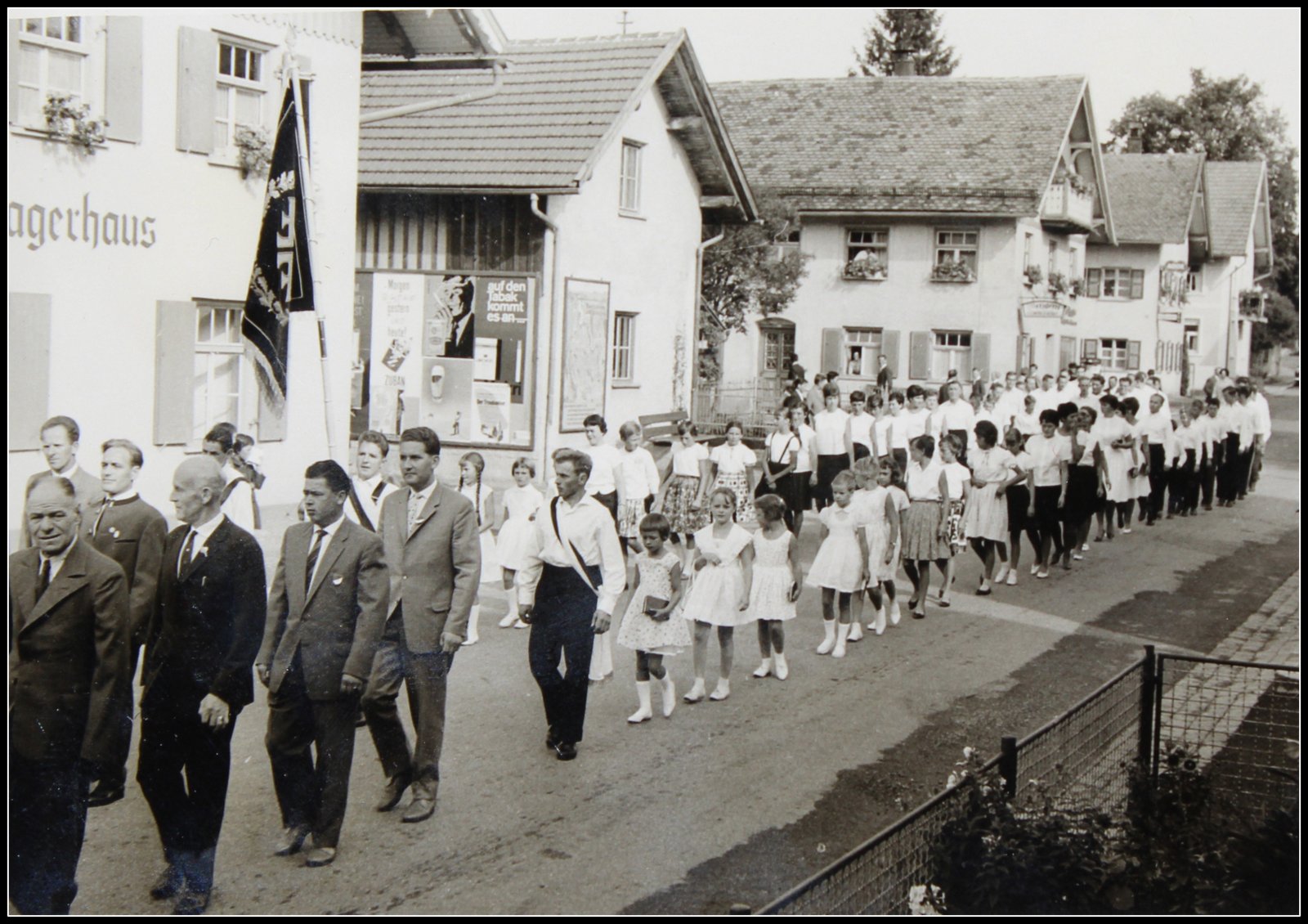 1958: "Im Frühling" Personen: Eggensperger Gotthart, Zimmermann Josef, Baur Josef, Sittka Hans, Schreck Willi, Ramp Dorle, Herb Erwin, Kellner Alois, Gantner Jakob, Baur Edmund, Walker Elisabeth, Würzner Resi, Botzenhart Franz, Frau Zimmermann, Wiedemann Alfons
