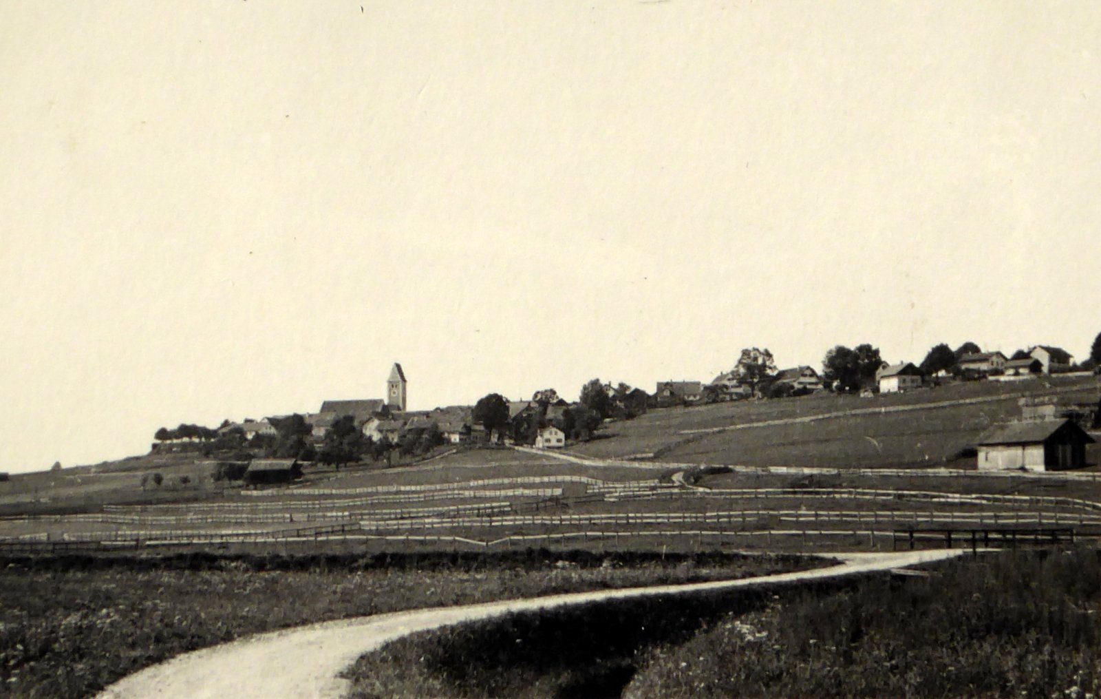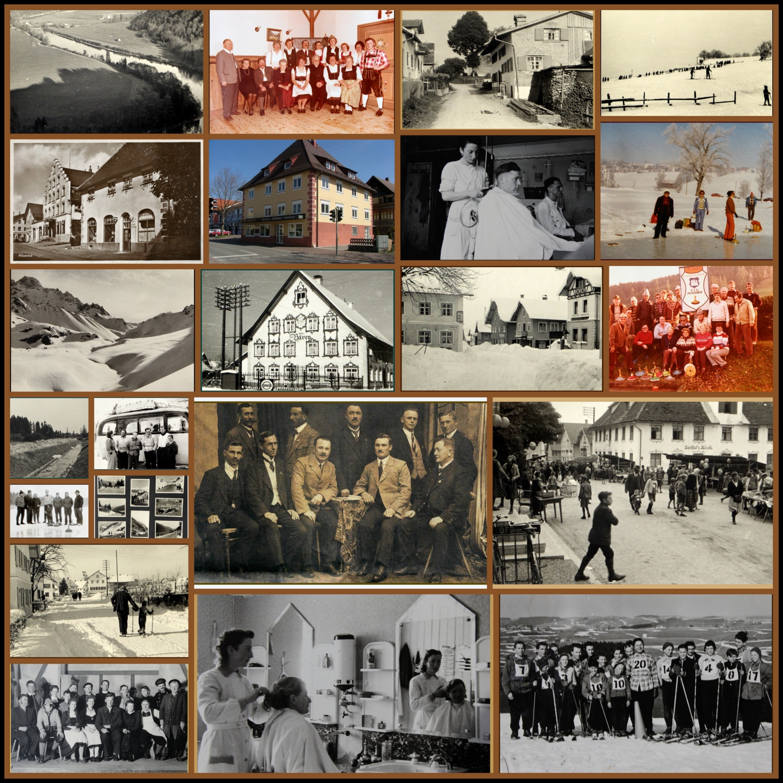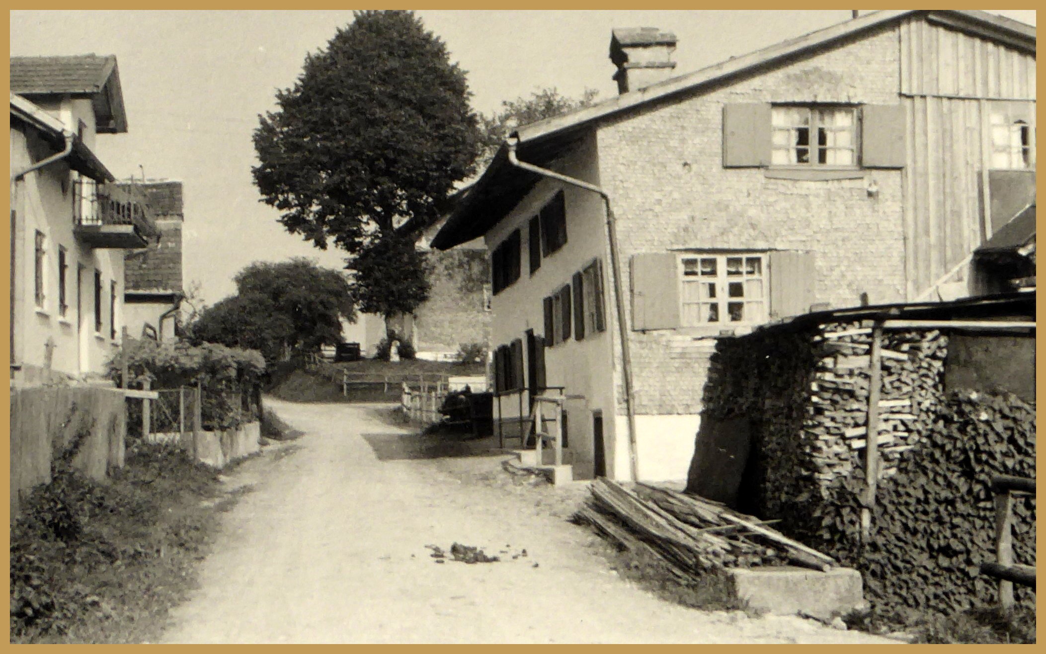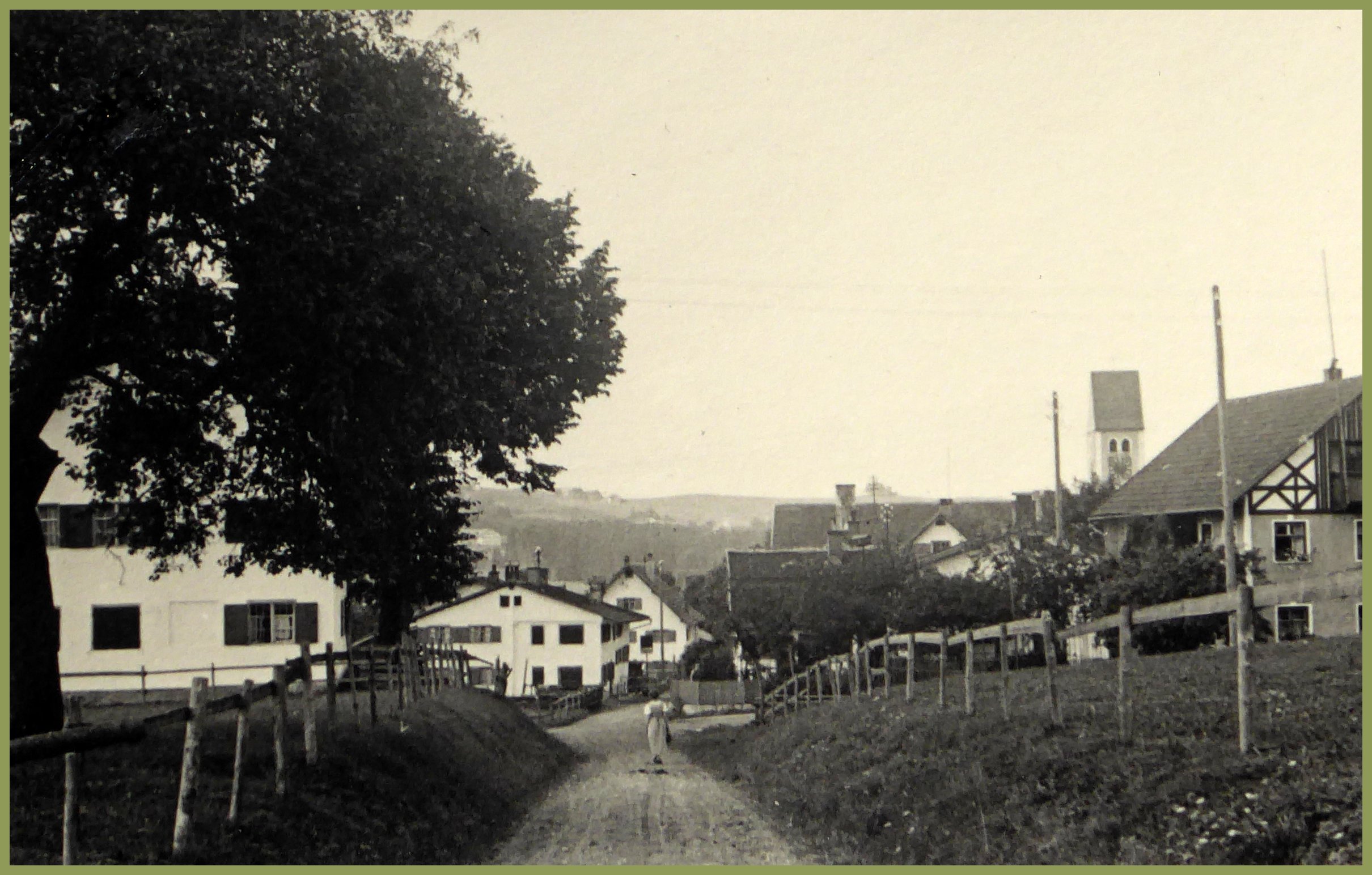 Auch Strom- und Telefonmasten mit den weißen Isolatoren prägten früher das Ortsbild. Maler aus dem Oberbayrischem umrandeten in den Dreißigerjahren die Fenster des Bären im Barockstil.