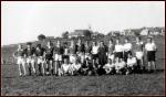 - 1950 Fußballmannschaft des TSV Altusried. Hemd oder Unterhemd sind das Trikot. Von links nach rechts: Kellner Luis, Hartmann Franz, Bösele Hermann, Graf Hans, Geißelmann Anton, Wolfgang Xaver. Kniend: Gruber Franz, Klaffke Helmut mit Schlägerkappe und Hartmann Rudi.