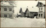 Die Schneepflüge, von Pferden gezogen, schafften nur eine schmale Spur. Rechts am Krünhaus gab es eine Shell Tankstelle.